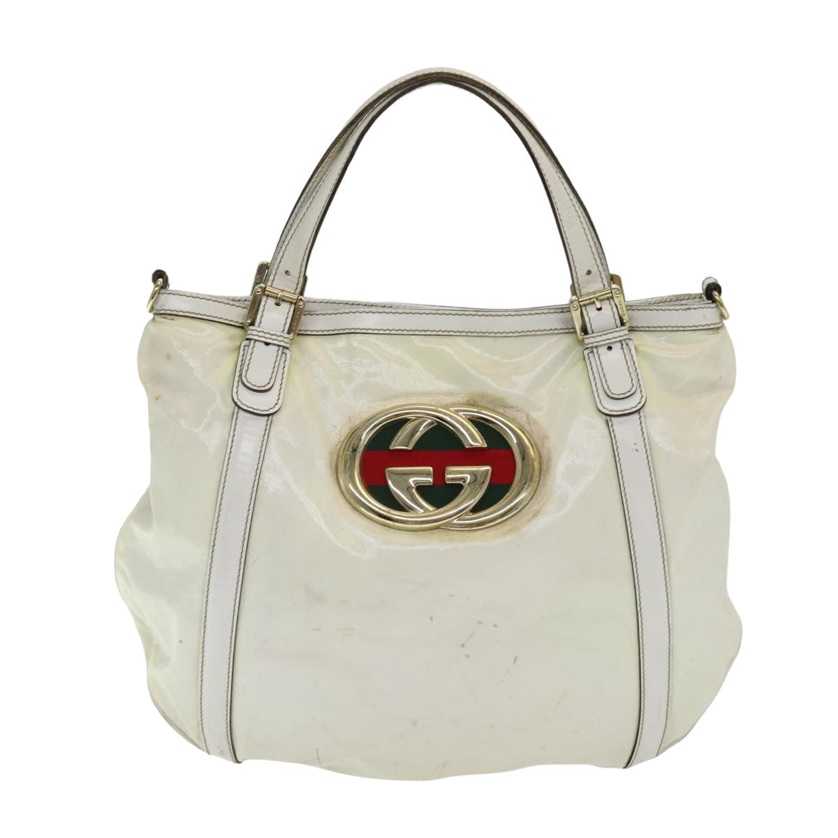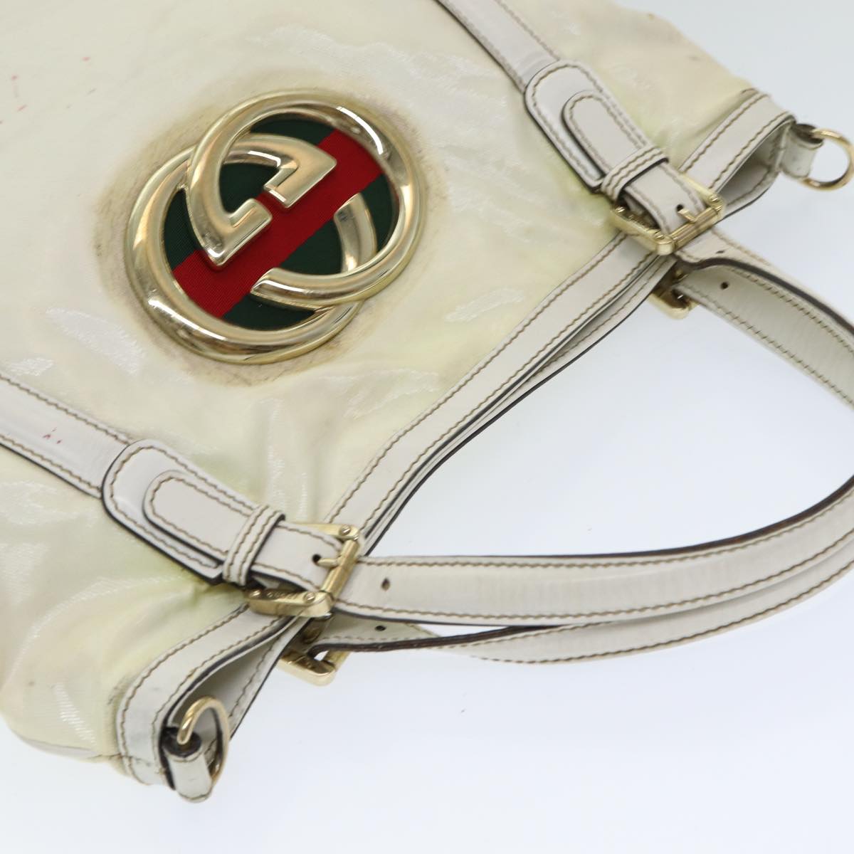 The Gucci Ophidia handbag in white coated canvas offers a stylish and iconic design. The coated canvas ensures durability while maintaining a chic appearance, making it a versatile accessory for daily use.