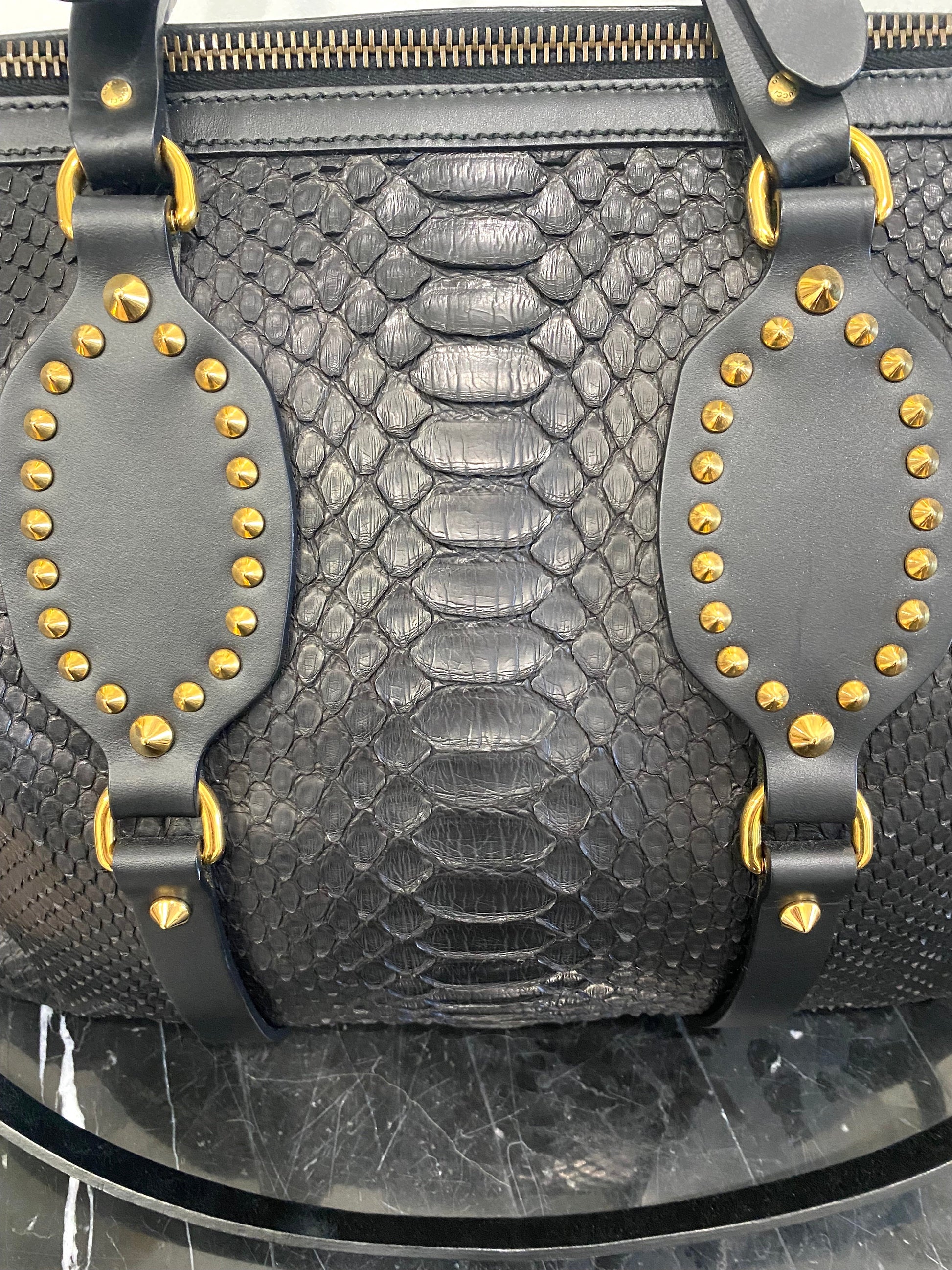 GUCCI PATTI STUDDED PYTHON TOTE BAG