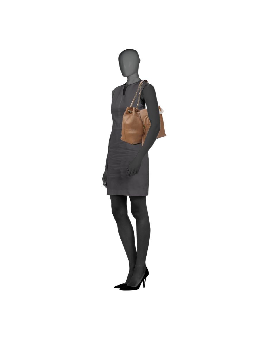 GUCCI PEBBLED CALFSKIN SOHO CHAIN SHOULDER BAG IN CAMELIA