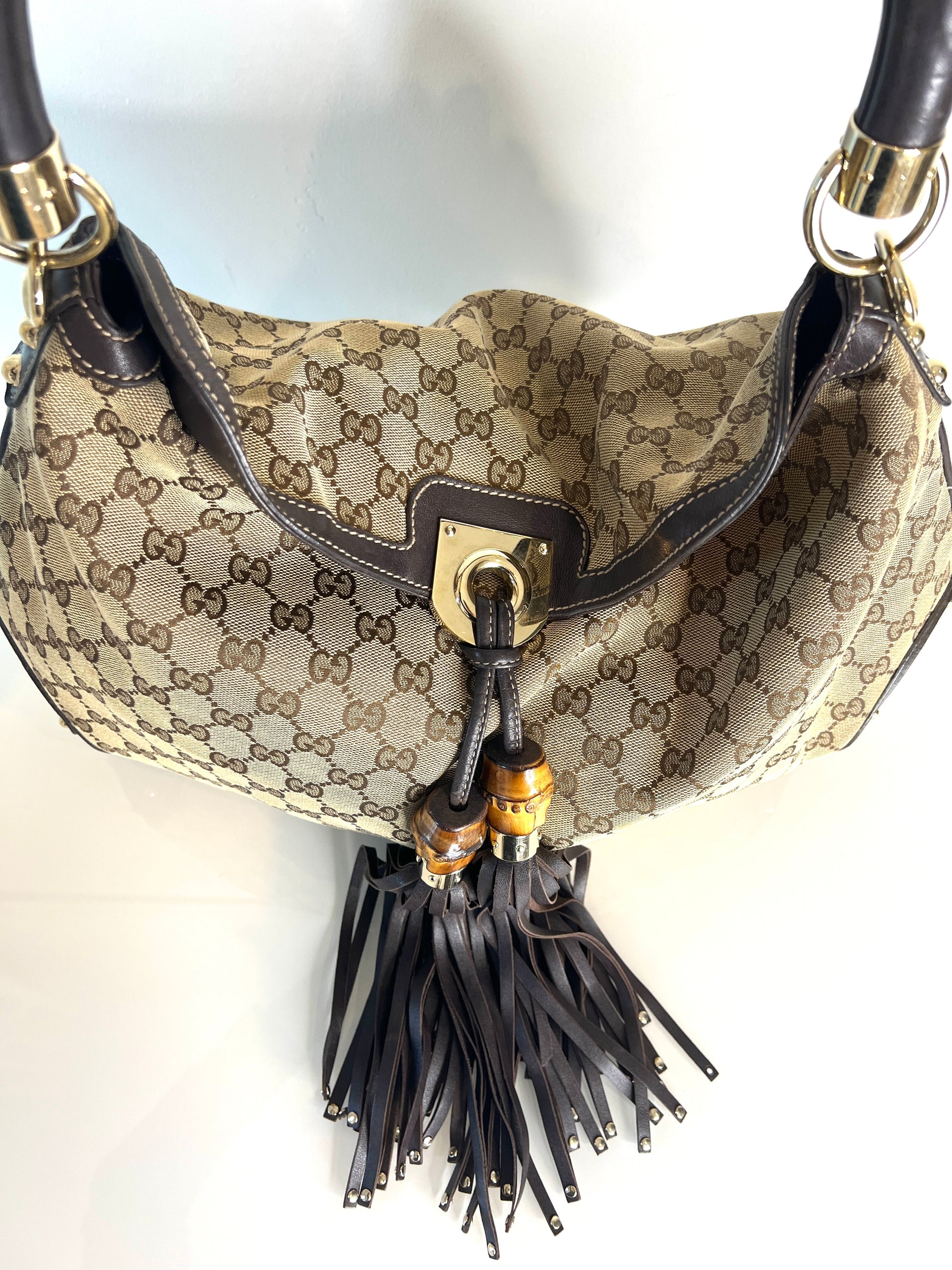 Gucci Pre-Owned GG Canvas Bamboo Indi Hobo Shoulder Bag