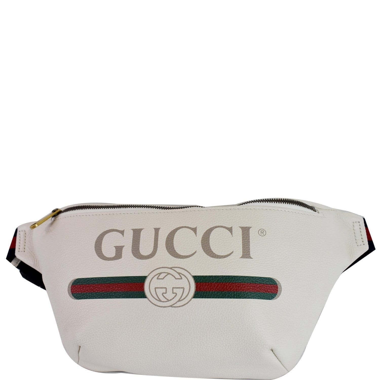 GUCCI Print Leather Medium Belt Waist Bum Bag White 530412