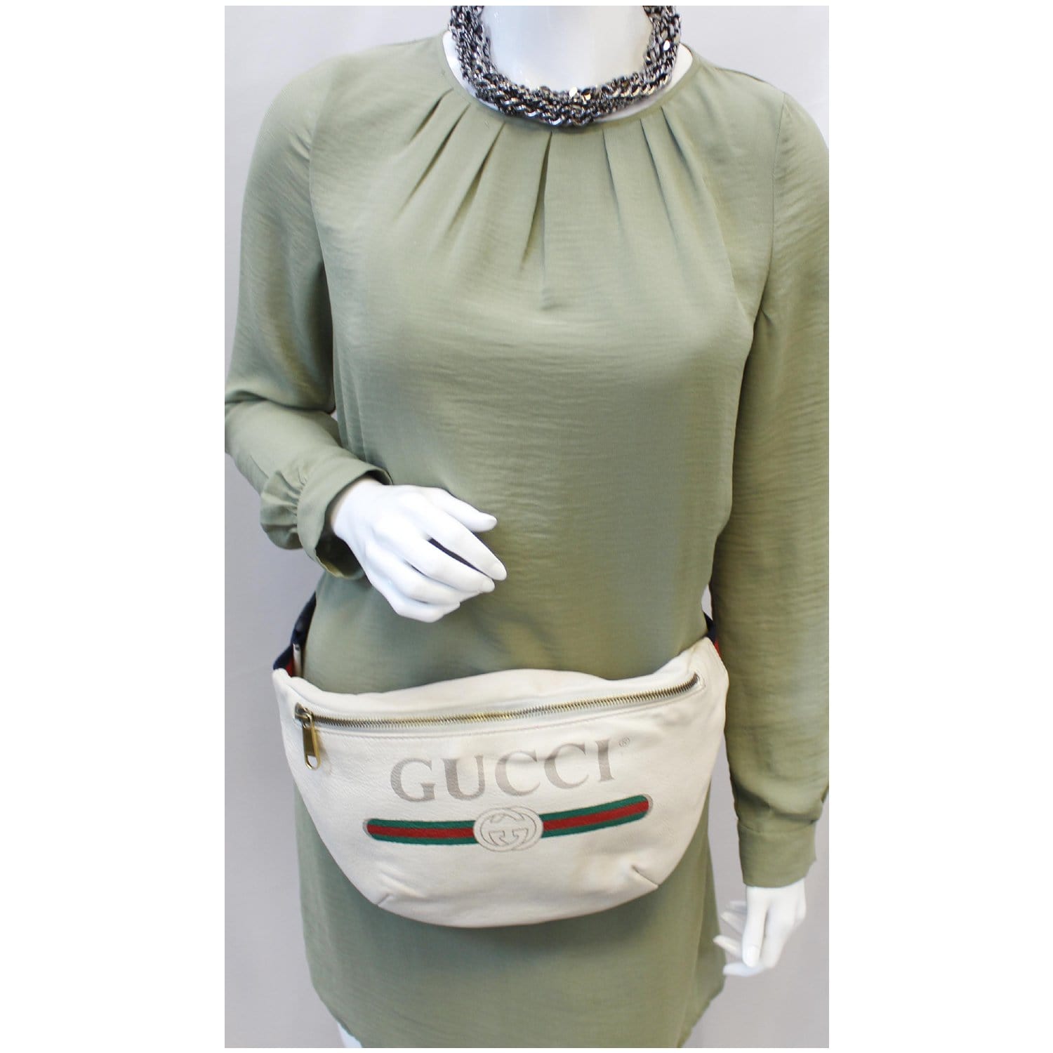 GUCCI Print Leather White Belt Waist Bum Bag Medium 530412