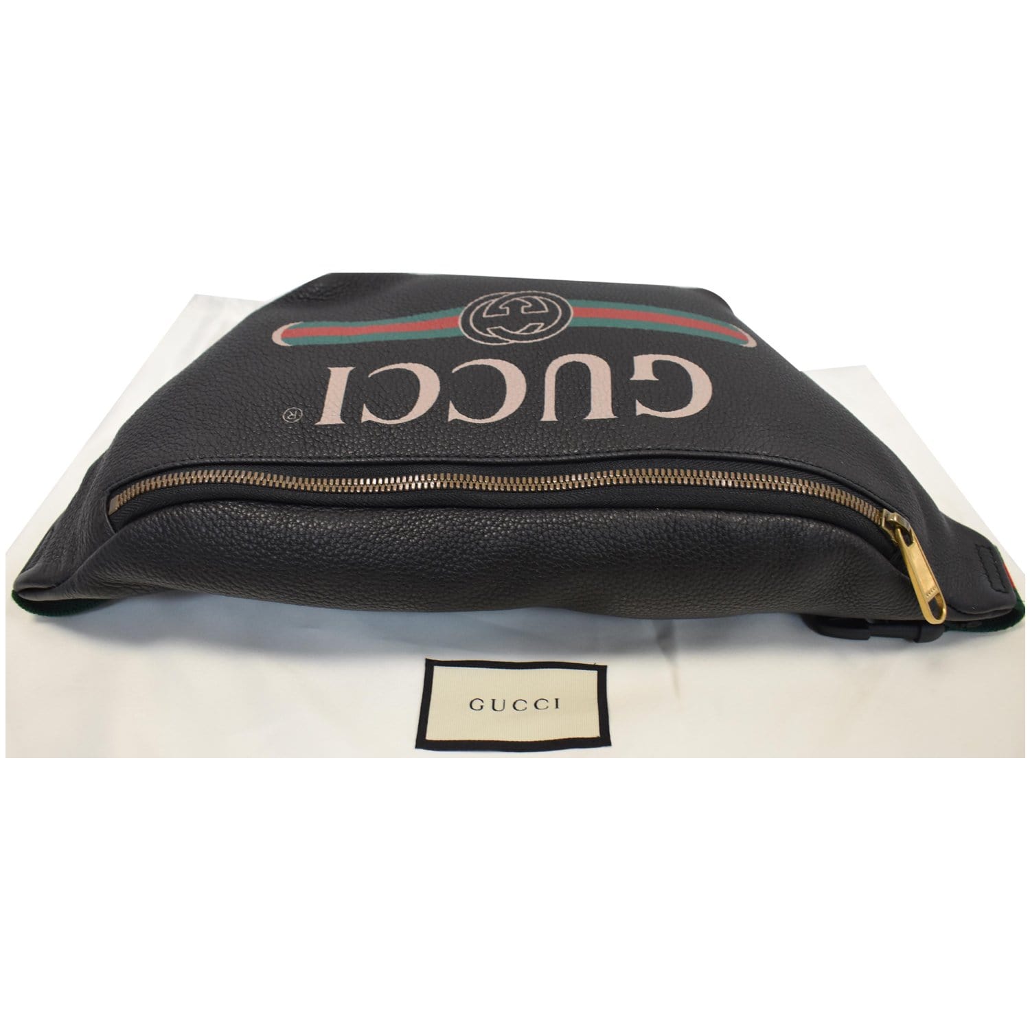 GUCCI Print Medium Leather Belt Bag Black 530412