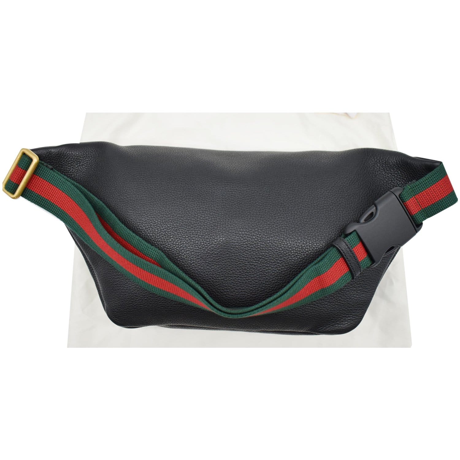 GUCCI Print Medium Leather Belt Waist Bum Bag Black 530412