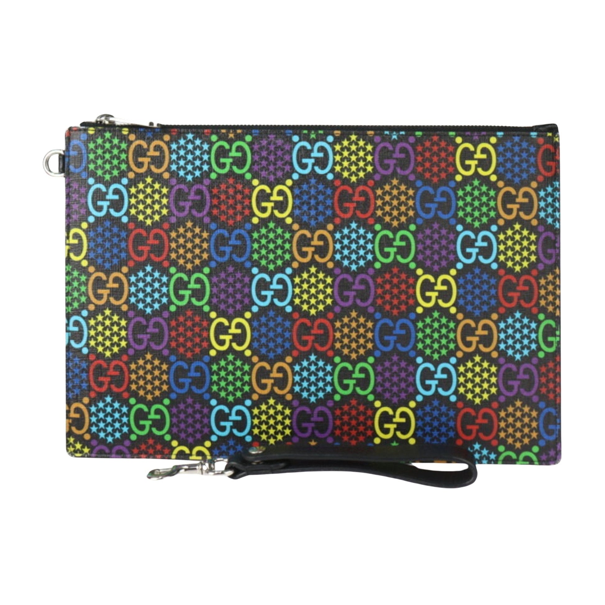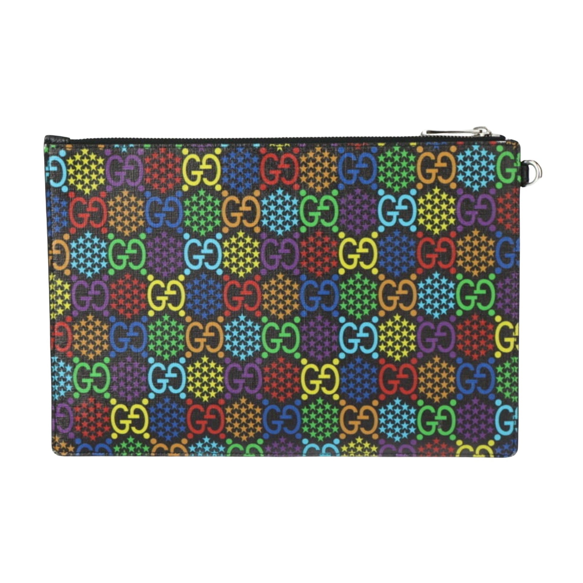 Dive into a world of bold style with the Gucci Multi GG Supreme Multicolor psychedelic zipper clutch. This iconic piece marries Gucci's classic heritage with a contemporary aesthetic, thanks to its iconic GG motif revisited in a kaleidoscope of bright colors. Whether you're cruising the city streets or attending a chic event, this clutch is the ultimate accessory for expressing your individuality in style.