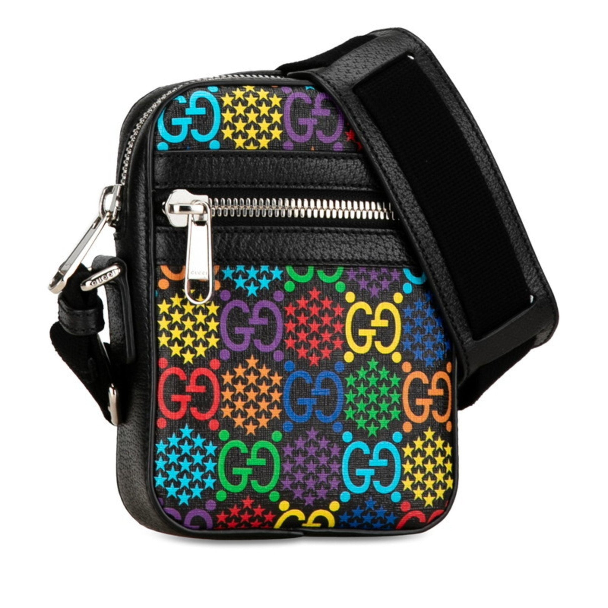 The psychedelic shoulder bag by the great brand Gucci, in black PVC leather, is an elegant style expression suitable for women. Offering a practical and refined option for those in search of sophistication in their accessories.