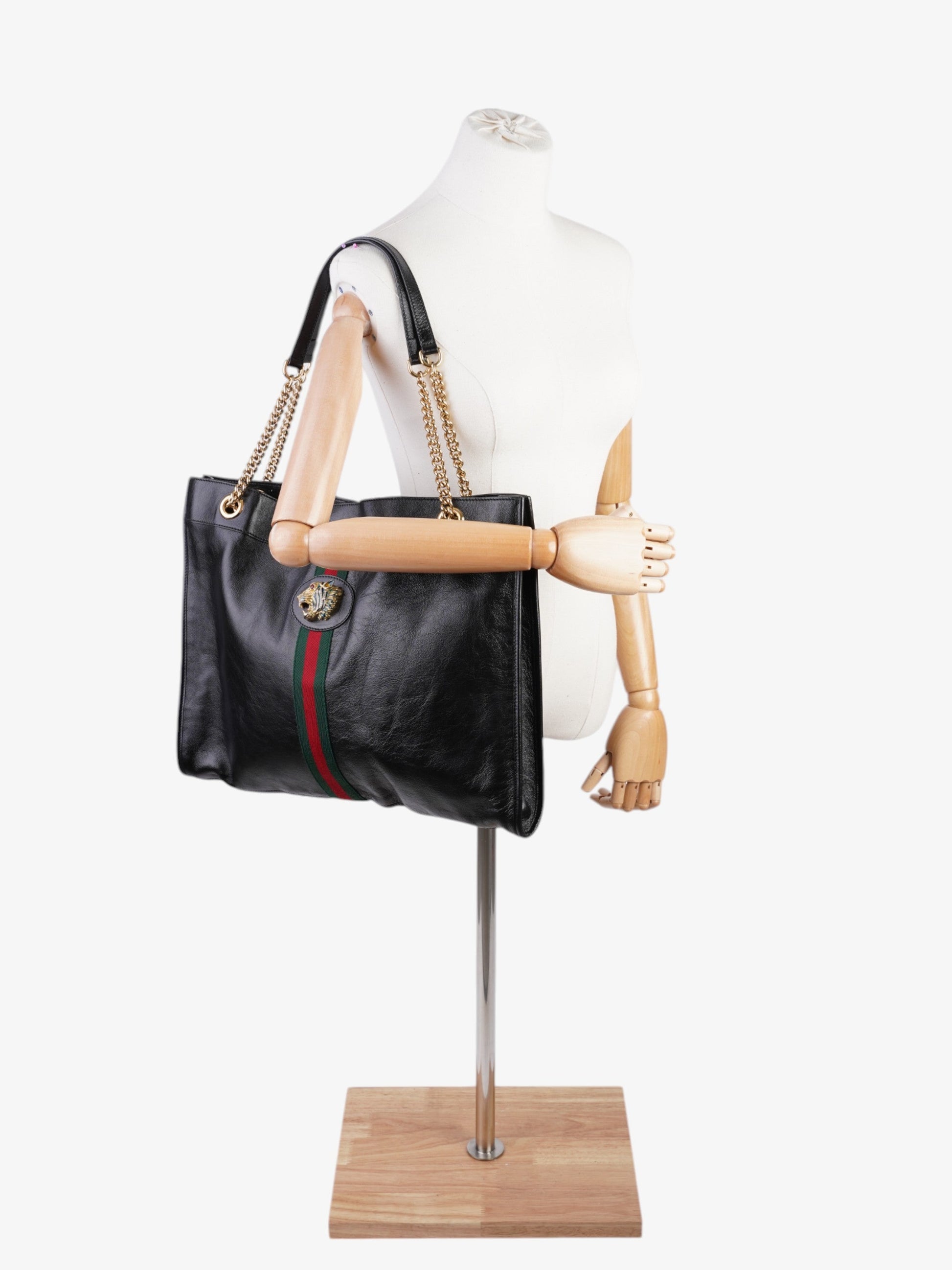 Gucci Rajah Chain Tote Black / Green / Red Leather Large