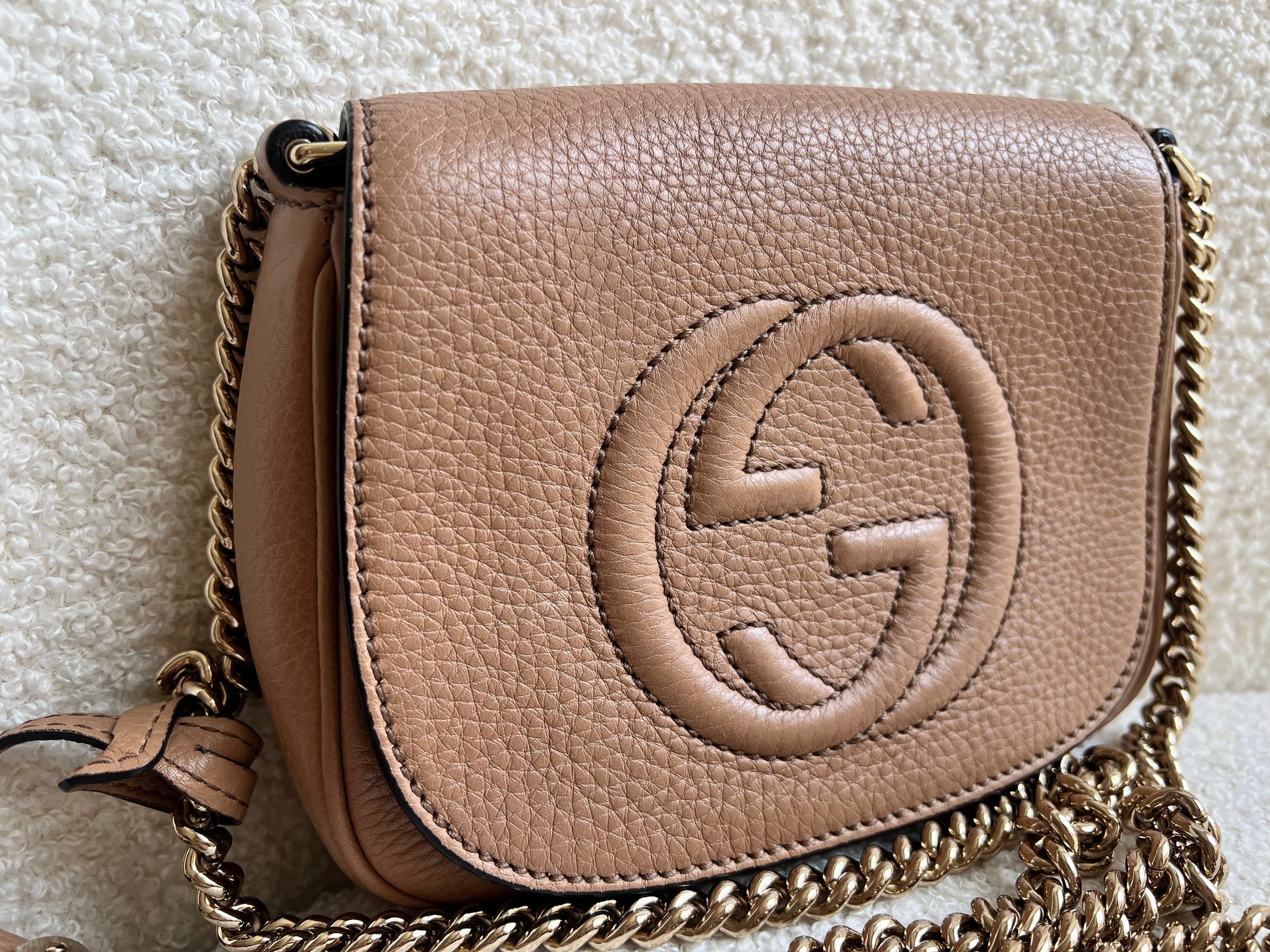 Gucci Rose Beige Mini Soho Chain Crossbody Flap Bag