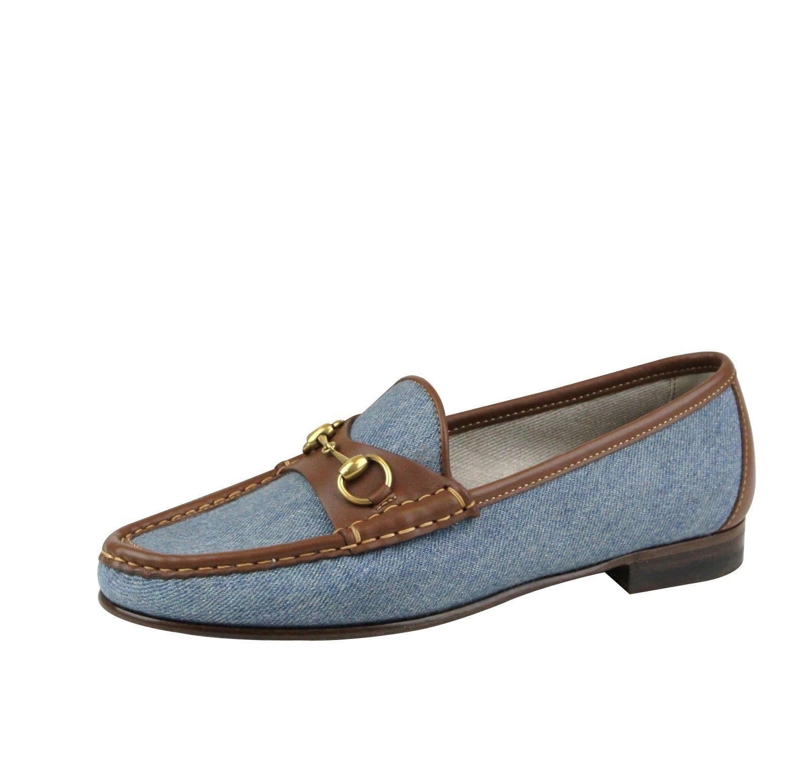 - 100% $625 Gucci 309717 Women's Blue Denim Loafer Horsebit Moccasins IT 37 / US 7