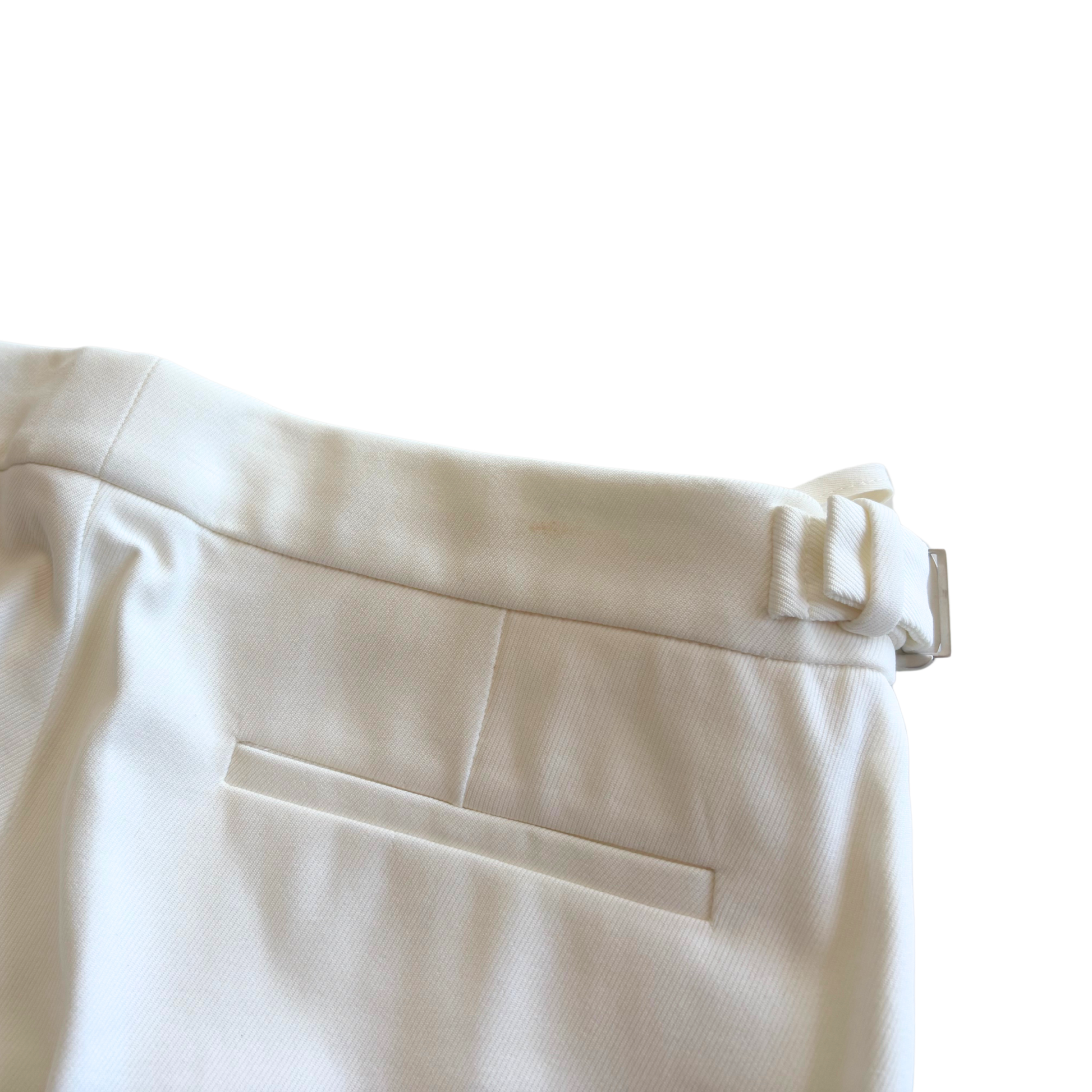 Gucci slim-fit trousers in a white cotton blend with silver buckle hardware at the waist.