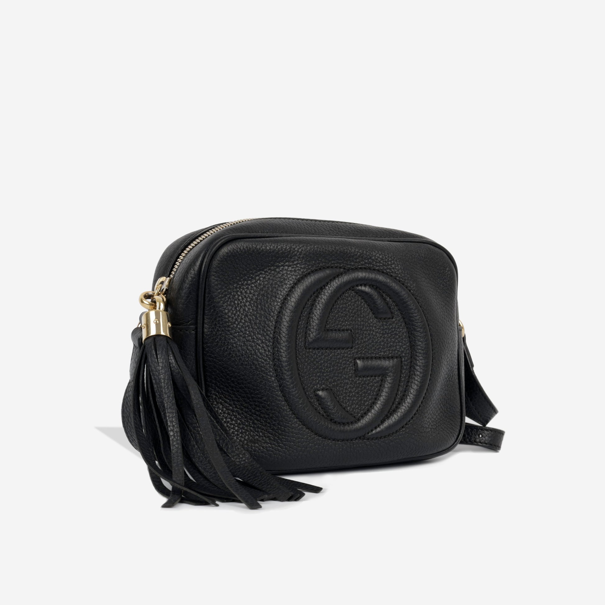 The Soho Disco bag from Gucci quickly became a brand classic upon its debut. A coveted, It-Girl bag, the Disco Soho is crafted from black grained leather, featuring champagne gold tone hardware and a prominent GG stitched logo. Diverse and versatile, this stunning bag is spacious enough for all your essentials, making it a perfect everyday companion. The Soho’s minimal style makes it suited to almost any outfit - whether it's day or night.