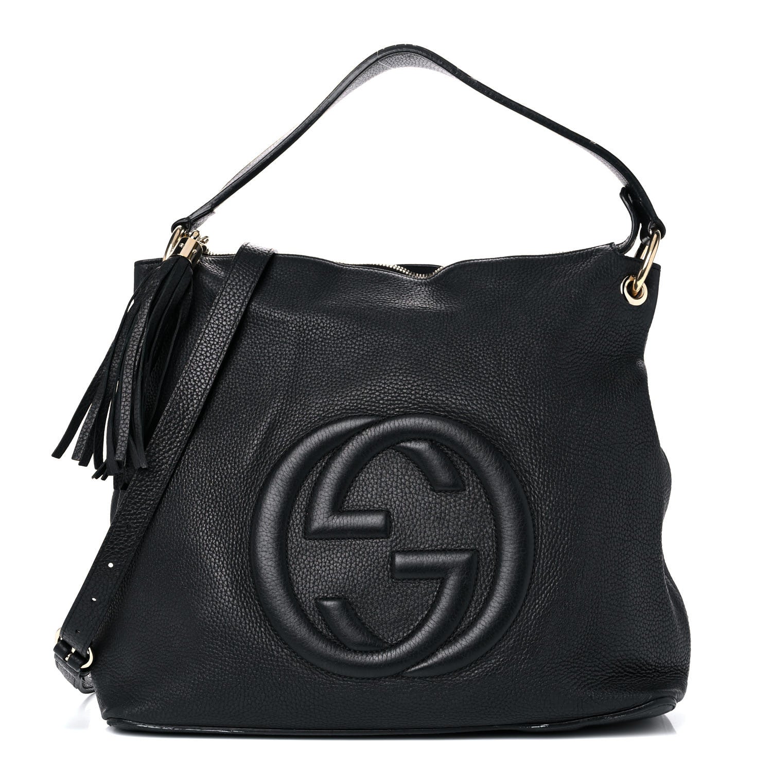 The Soho shoulder bag is characterized by its embossed interlocking G and tassel detail. Expertly made and beautifully worn.