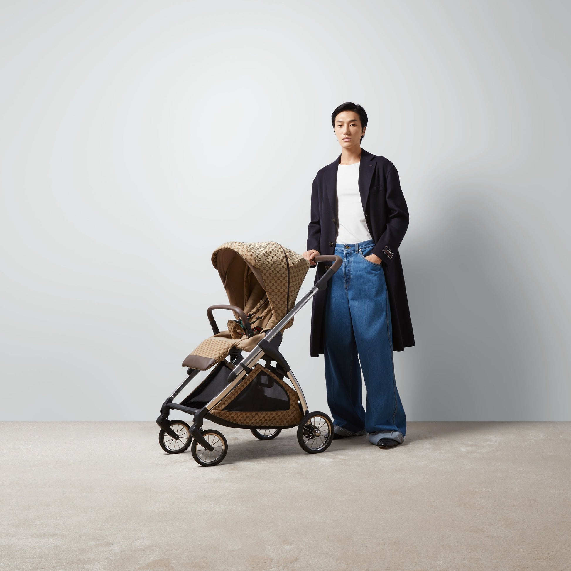Gucci expands its children's collection with its first stroller, in collaboration with Inglesina. Archival codes, such as the GG monogram and Web, are seamlessly woven into the lightweight designs. Committed to enhancing the wellness of little ones while offering maximum functionality and integrated safety, this stroller accompanies the child through the different phases of growth.