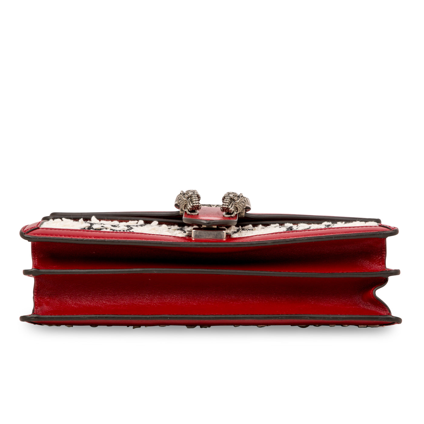 Inspired by the Greek God of wine and celebration, the Gucci Dionysus is an absolute must have for any woman with a love for luxury and a special spot for monograms. An instant classic, the Dionysus has become one of the most coveted bags of the past five years. The perfect companion for any and every occasion, you can easily pair your Dionysus with anything in your wardrobe. Decorated with the GG Supreme print, in a playful twist combining different materials and fabrics for this limited edition piece. Crafted from whitened black tweed fabrics and finished with a red leather trim, and of course the signature tiger clasp, this shoulder bag can easily fit all your every day essentials comfortably inside. Sleek, stylish and sophisticated, this stunning bag is the perfect balance between feminine and edgy. A classic piece you'll have for life, the Dionysus is one you'll never fall out of love with.