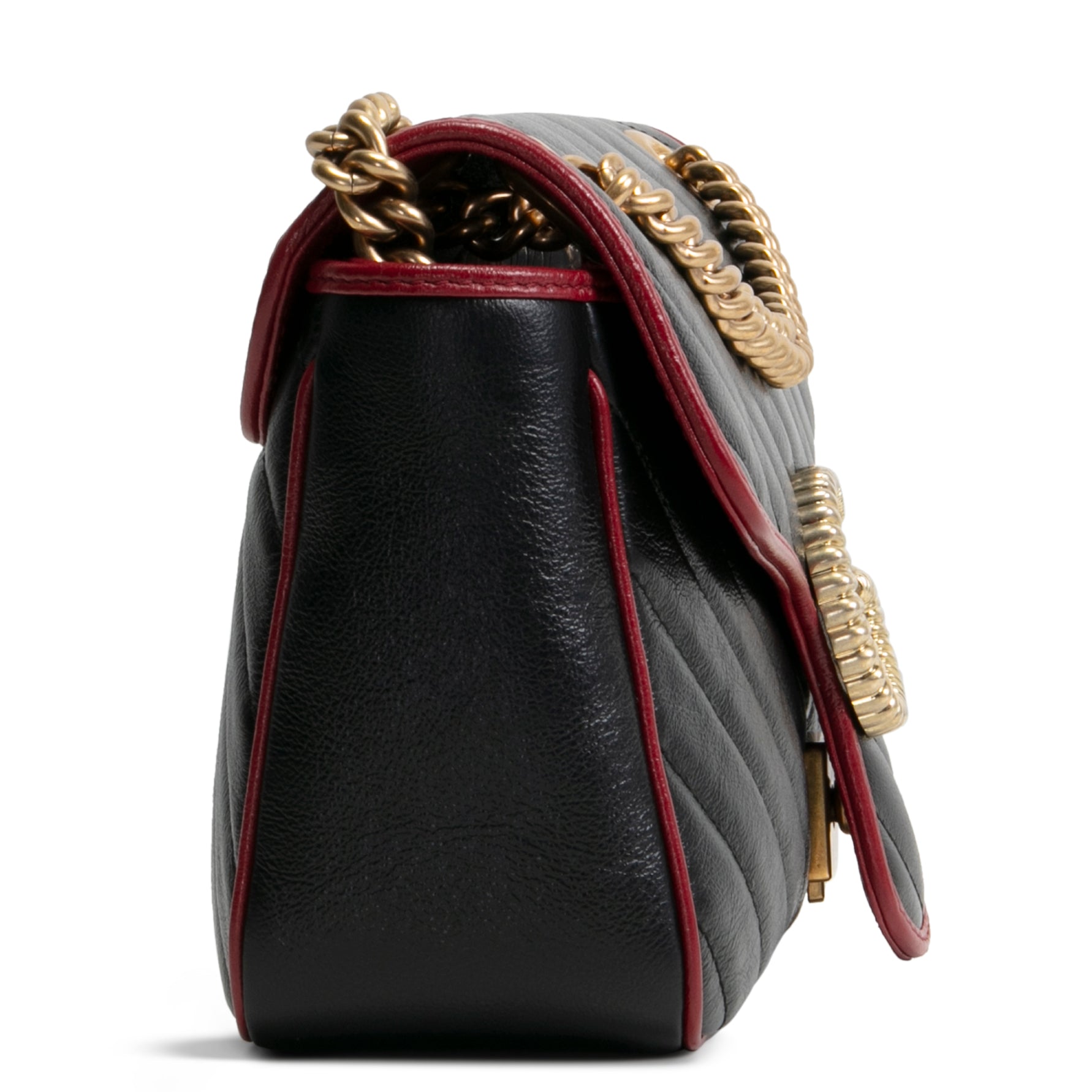 GUCCI Small Torchon GG Marmont Shoulder Bag- Black/Romantic Cherry
