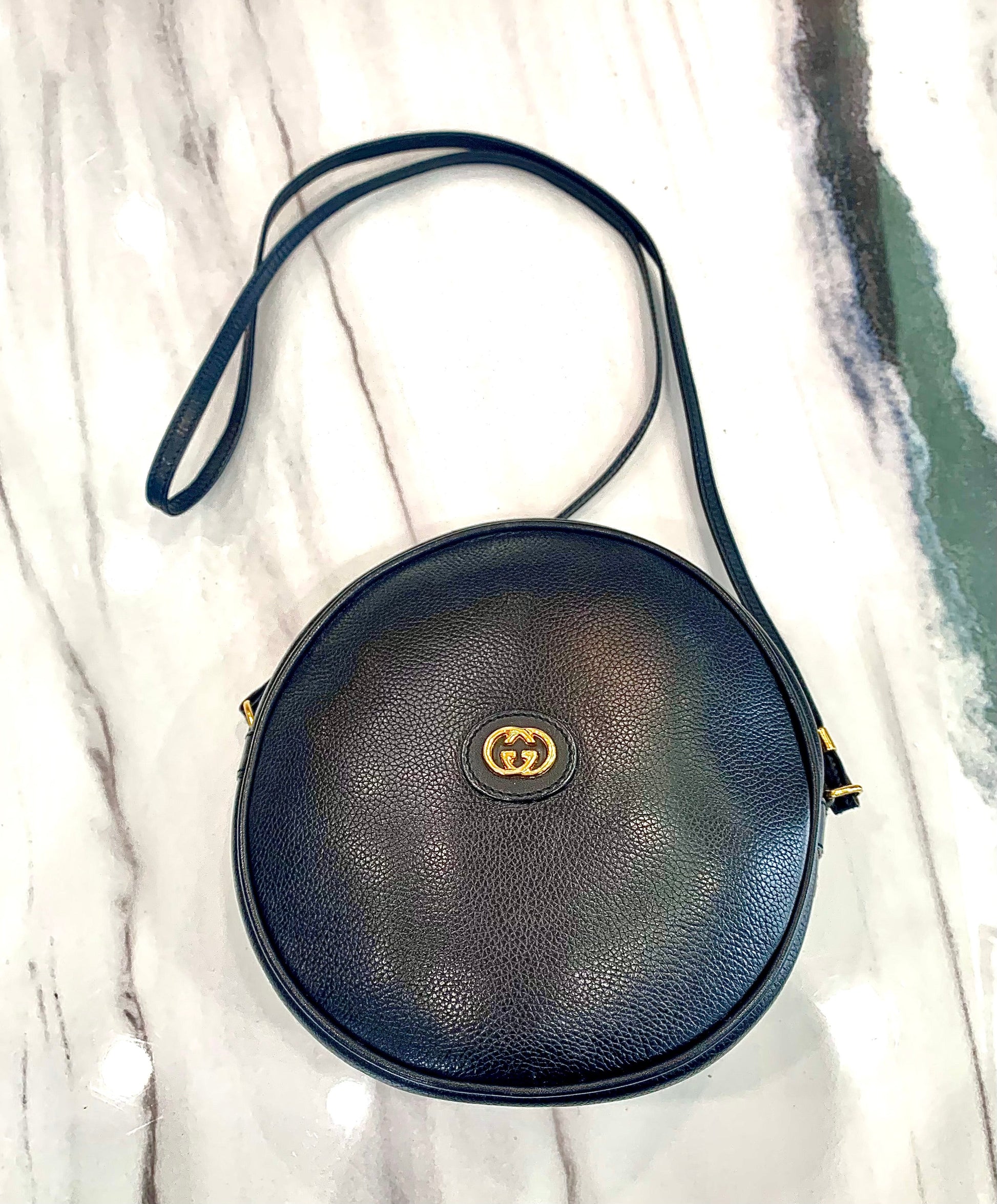 GUCCI Vintage Round Canteen-Style Black Leather Bag