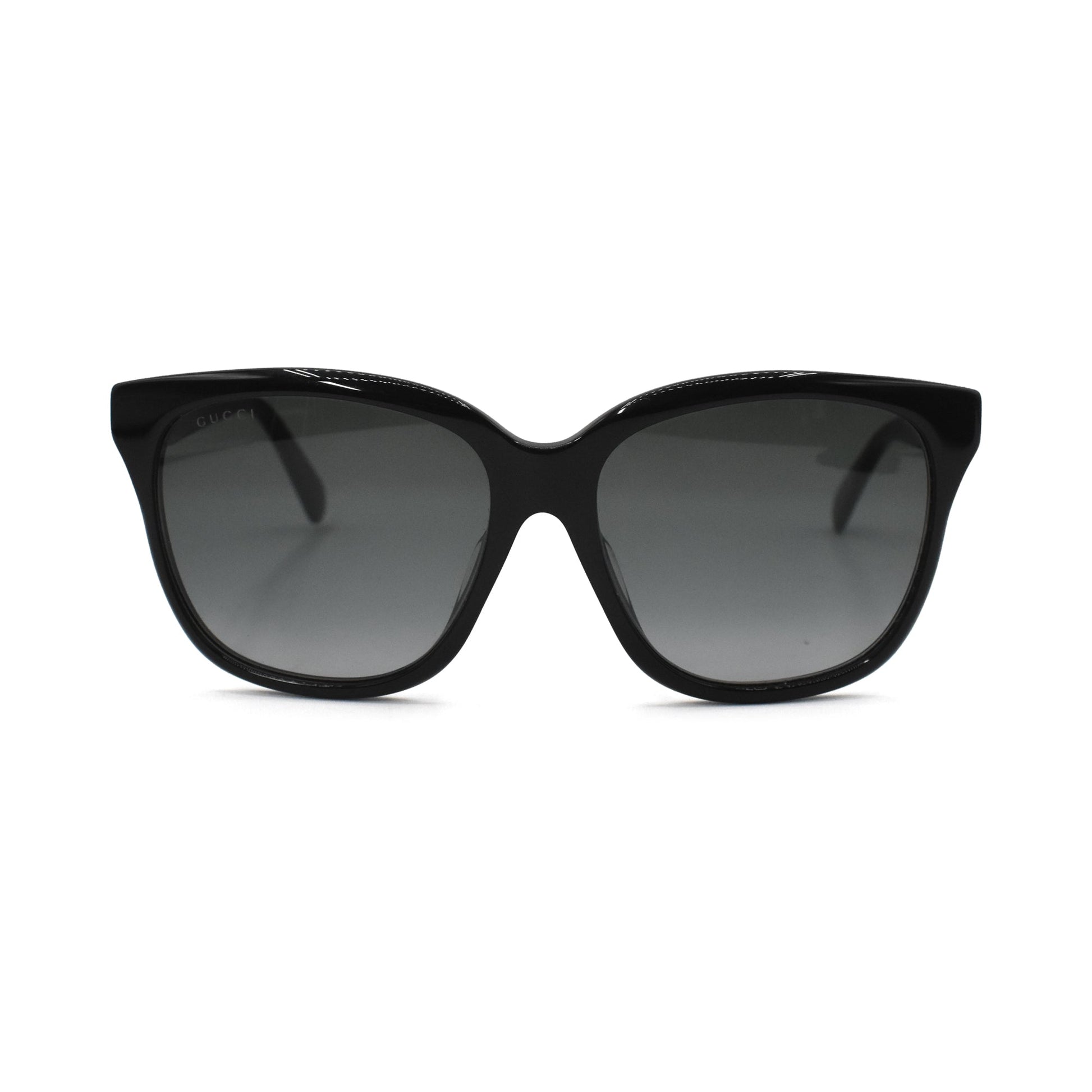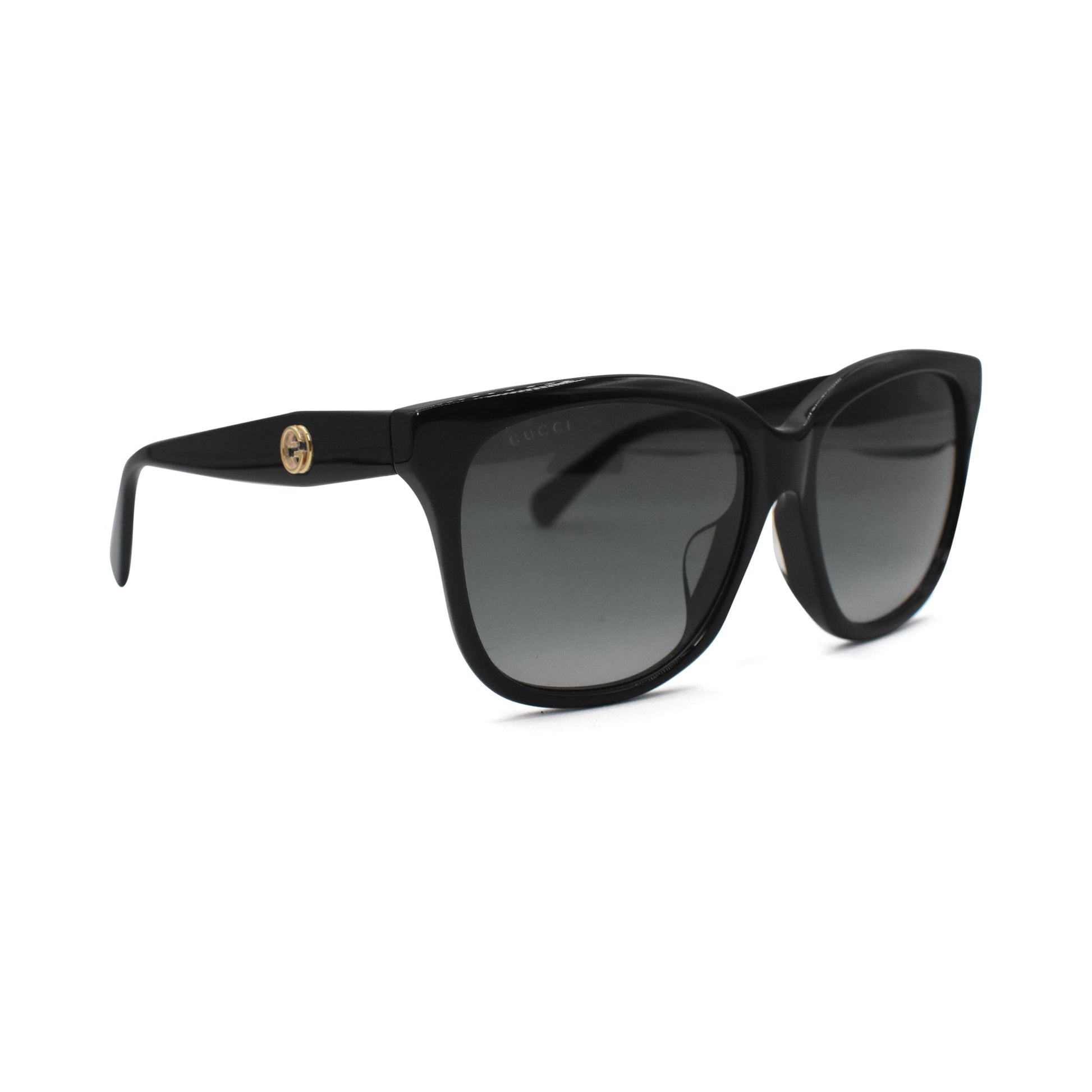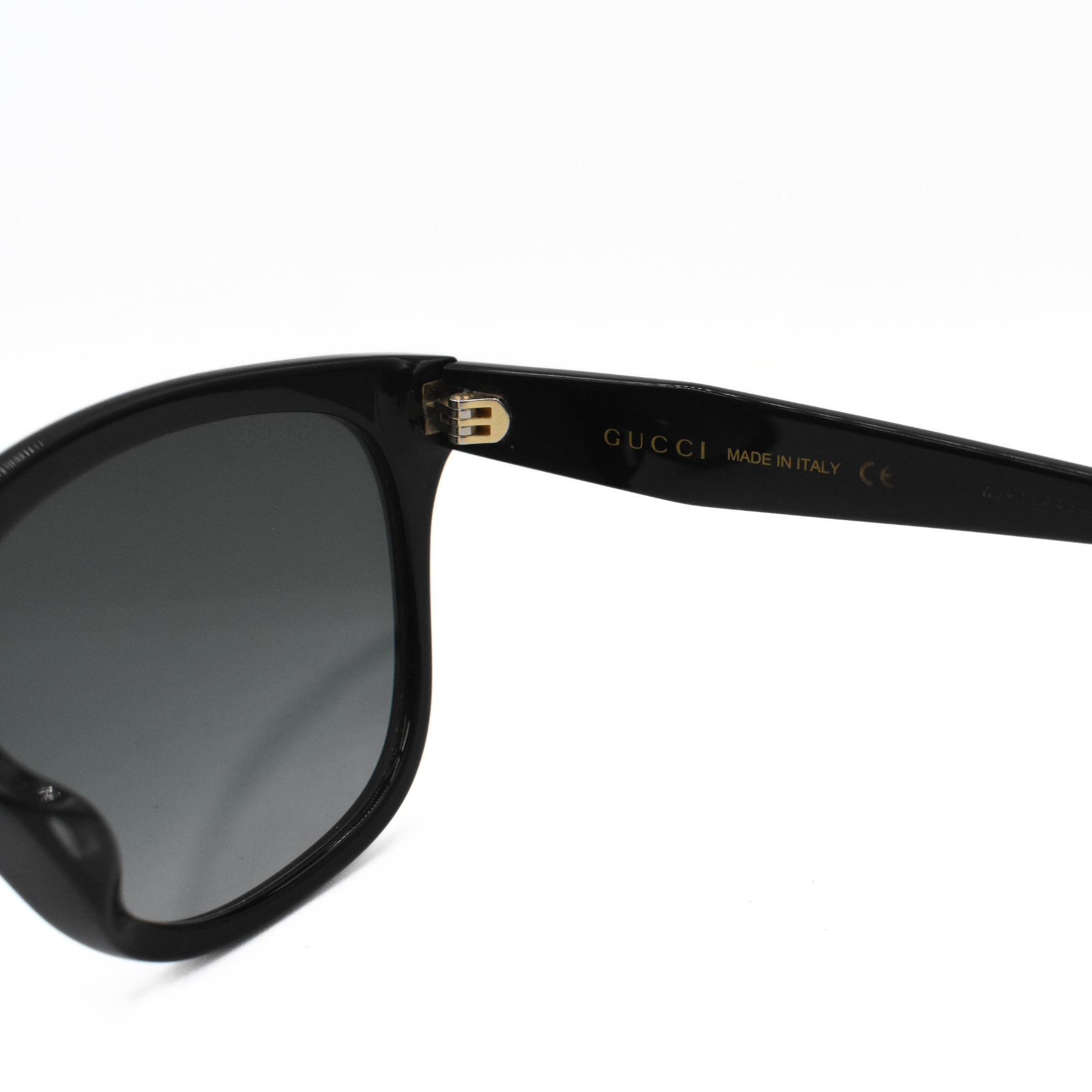 Gucci wayfarer squared sunglasses in black acetate with small gold 'GG' logo on the arms.