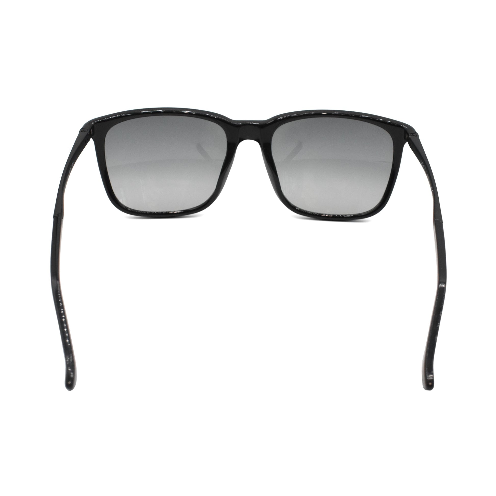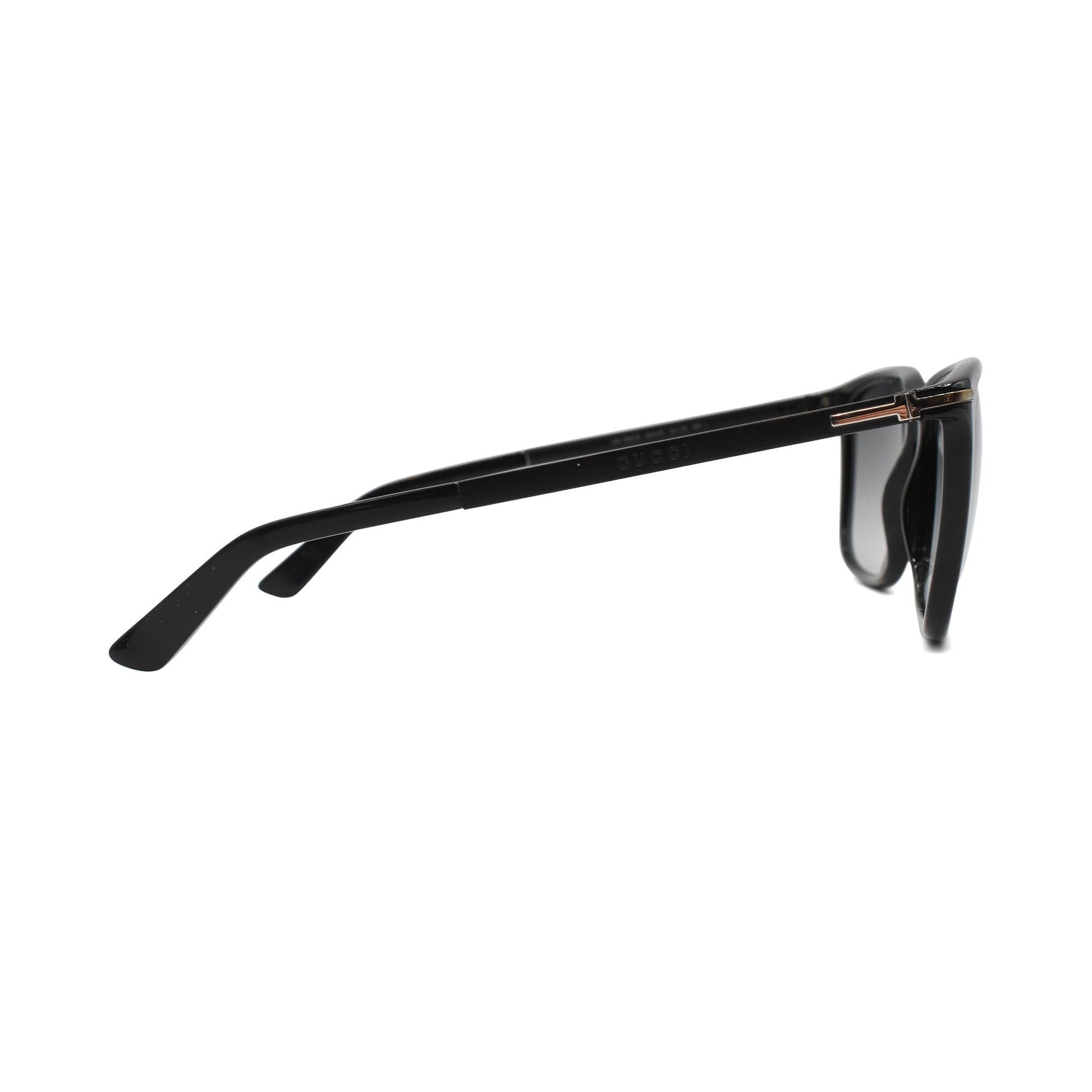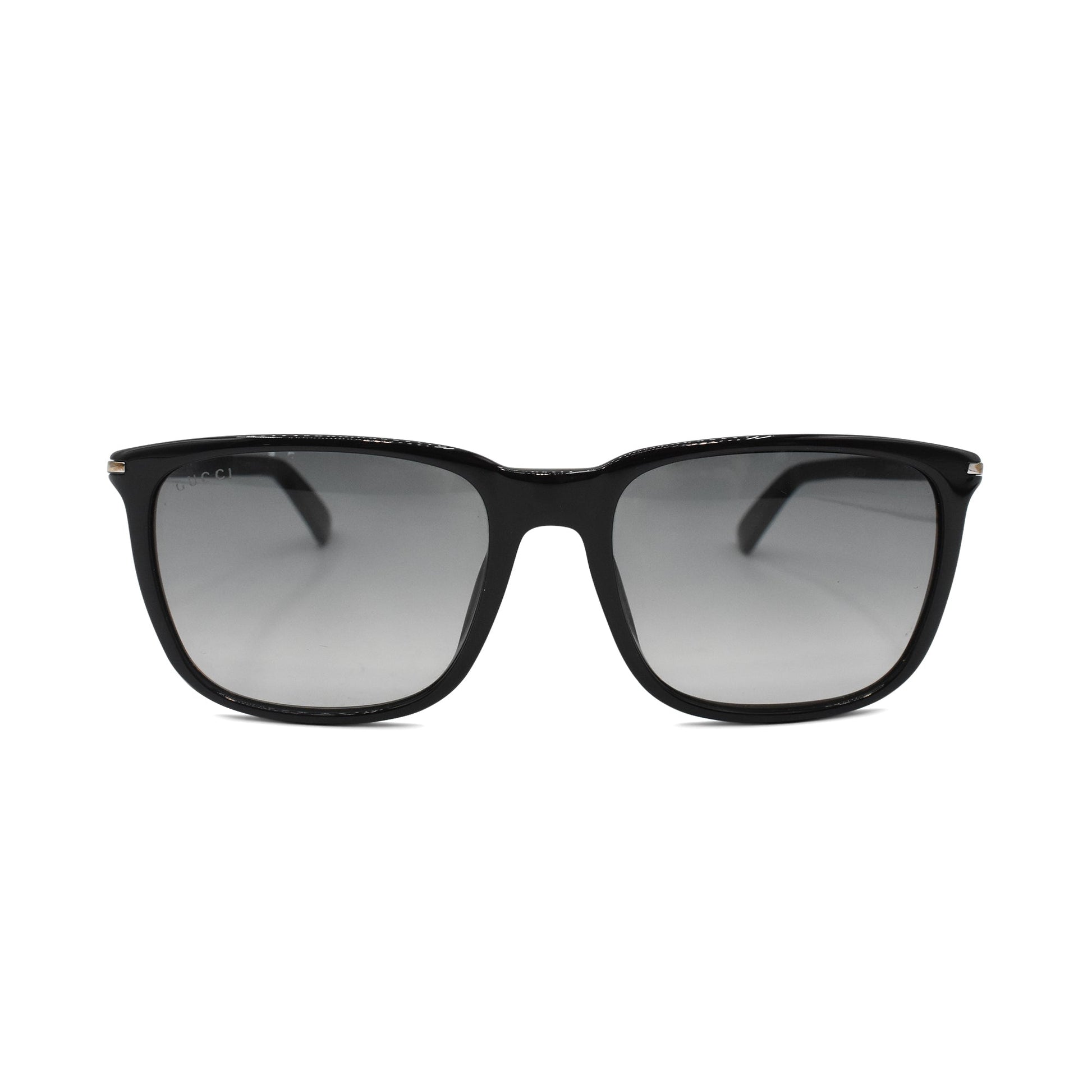 Gucci wayfarer sunglasses in black acetate with a matte arm bar and a silver metal brow detail.