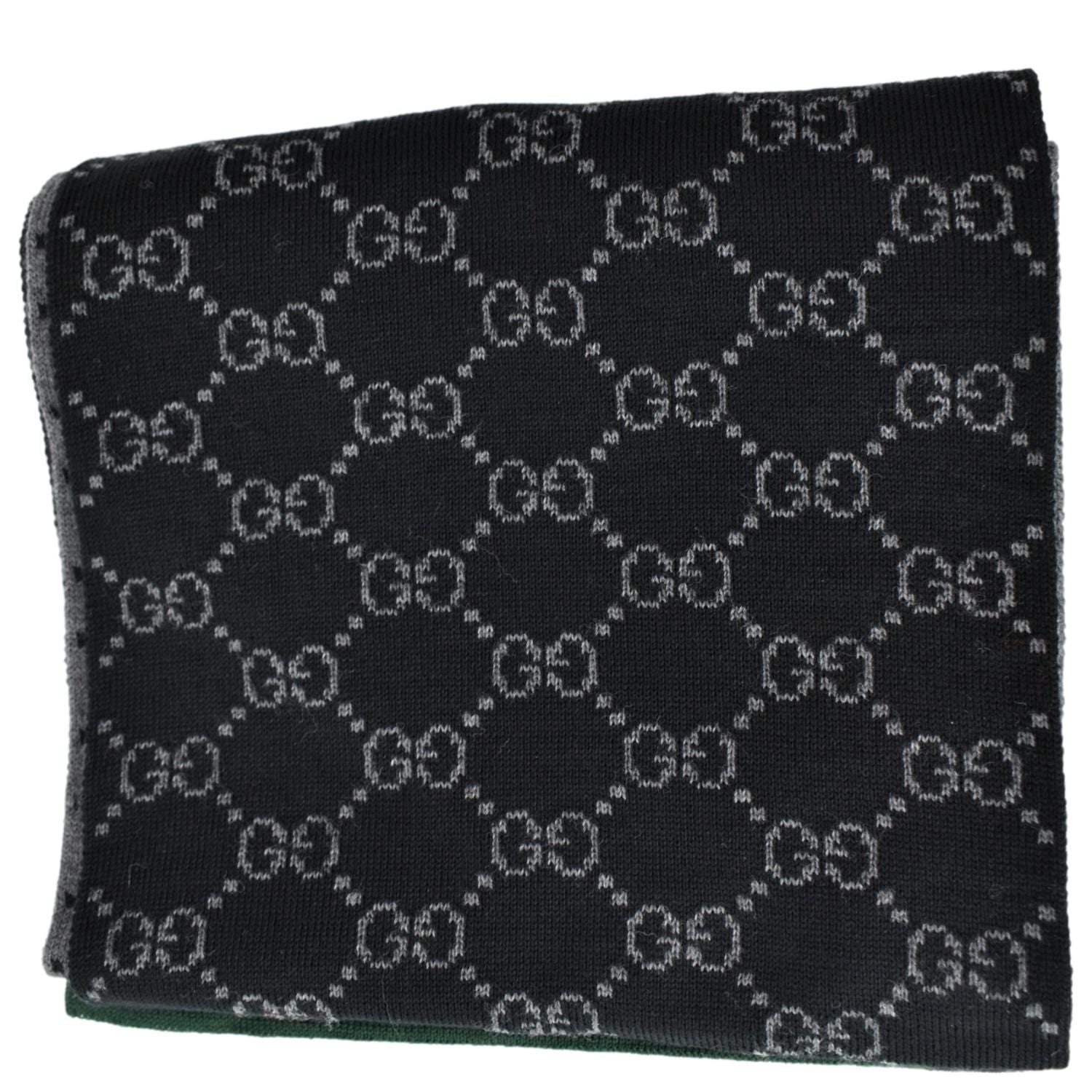 GUCCI GG Logo Wool Scarf Grey Black 325806