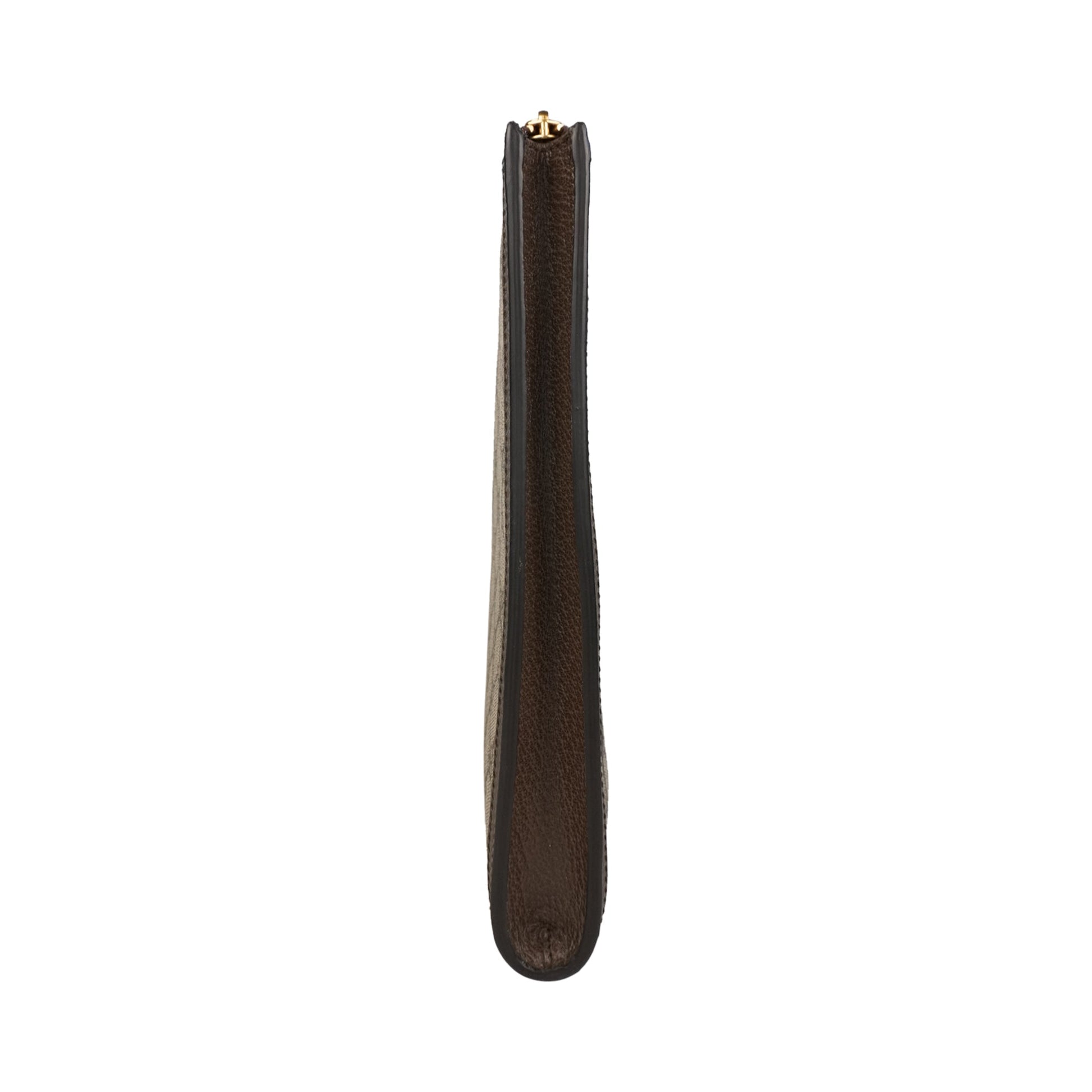 Gucci x Balenciaga 'The Hacker Project Graffiti Laptop Pouch' in beige monogram printed coated canvas with a brown leather trim, a red and green canvas racing stripe, and a black graffiti text graphic across the front. The bag has gold 'BB' logo emblem hardware, a top zip opening, and a black nylon inner lining.