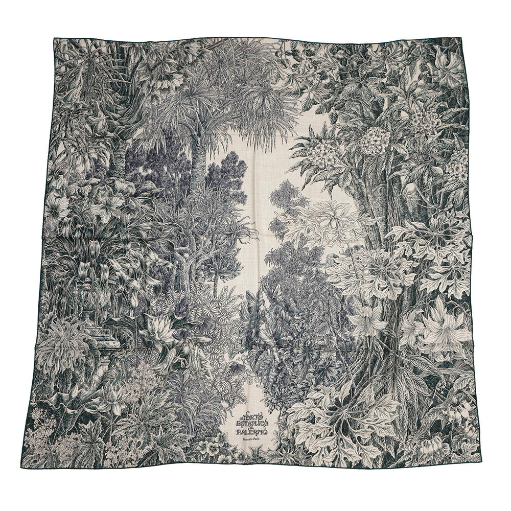 HERMES Carre Gean All'Orto Botanico di Palermo At the botanical gardens of Palermo Size 140 Vert Roden/Natural/Encre Cashmere70% Silk30%