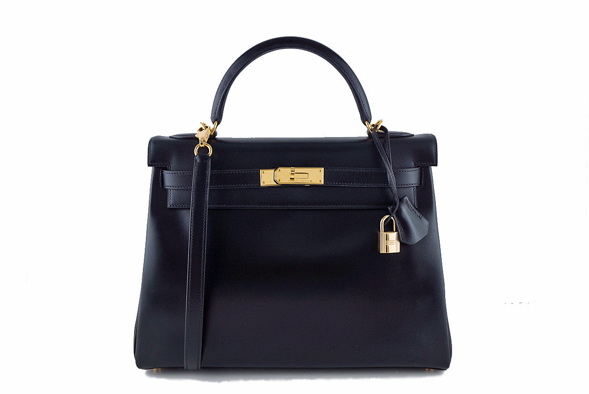 The Hermes Kelly is probably one of the most classic and coveted and desired bags in the world. Currently, the Box calf 32cm Kelly is extremely difficult to find in Black with 24k Gold Plated Hardware, particularly in this beautiful leather.