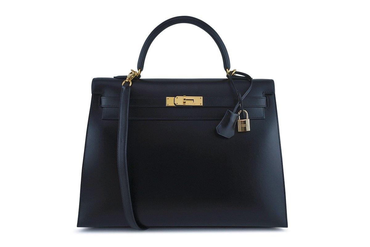 Hermes Black 35cm Box calf Kelly Sellier Bag