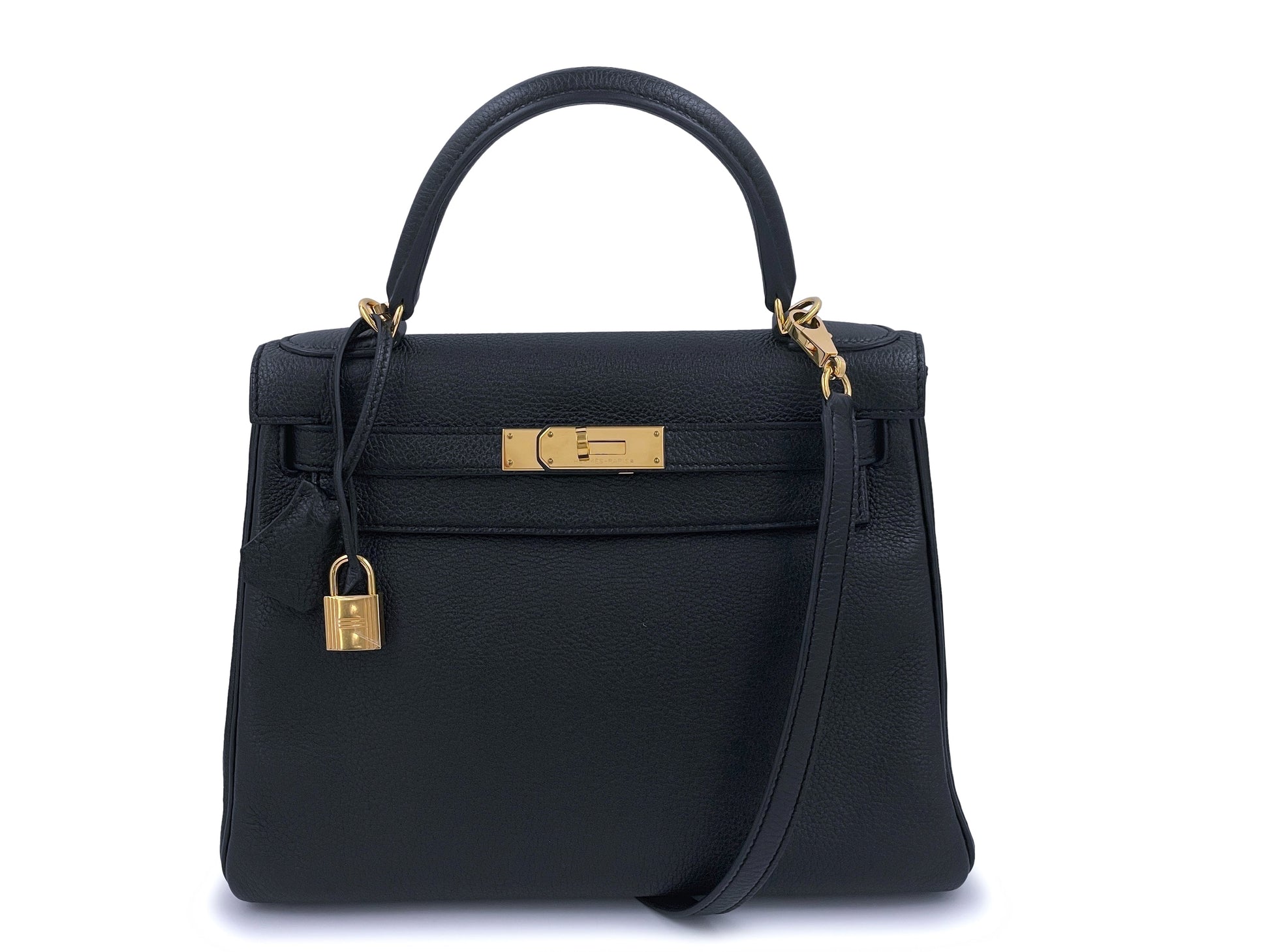 Hermes Black Kelly 28 Retourne Togo Shoulder Tote Bag 24k GHW