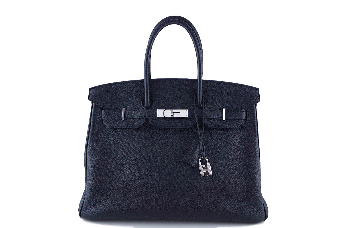 The Hermes Birkin is probably one of the most coveted and desired bags in the world. Currently, the Togo leather 35cm Birkin is extremely difficult to find in Black with Palladium Hardware, particularly in this condition.