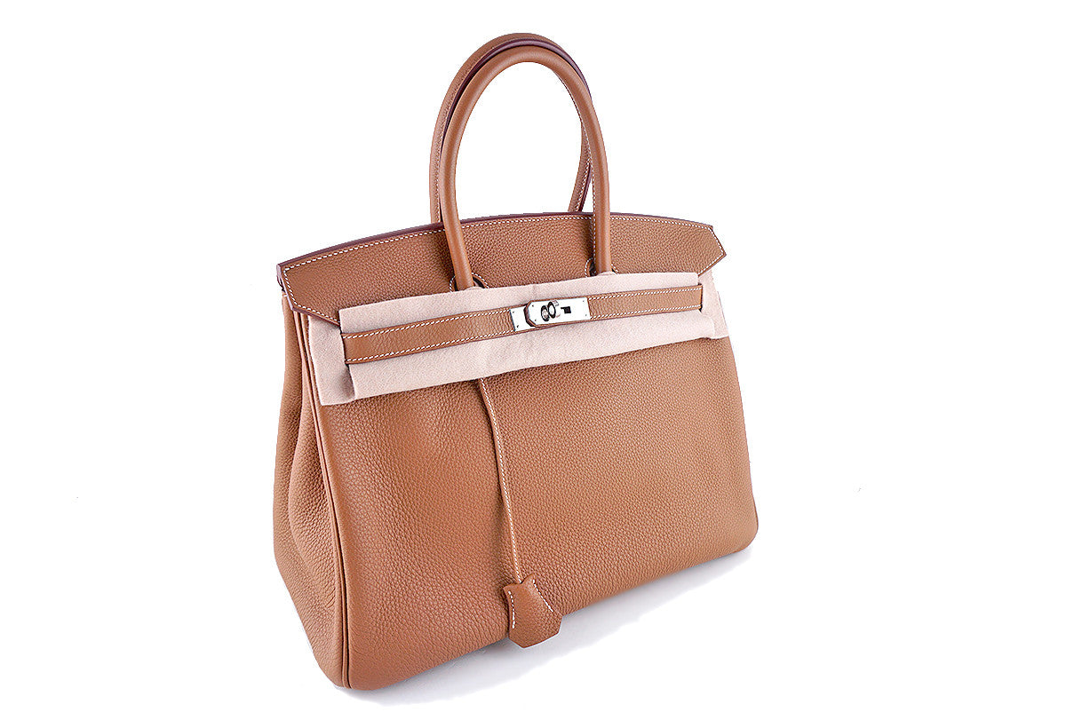 The Hermes Birkin is probably one of the most coveted and desired bags in the world. Currently, the Togo baby bull 35cm Birkin is extremely difficult to find in Gold with Palladium Hardware, particularly in this condition.