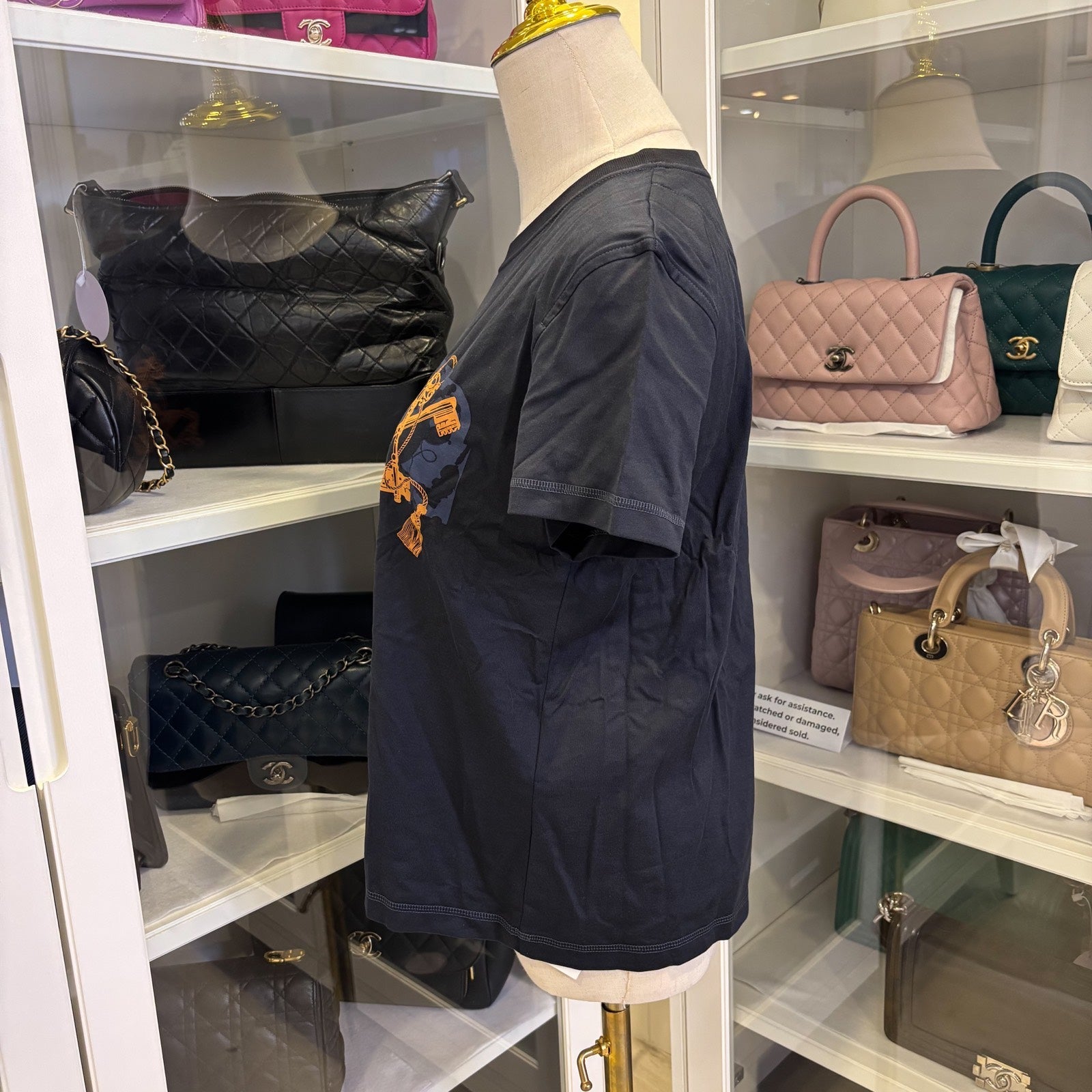 Hermes Droit Cartouche T-shirt in Bleu Noir Cotton