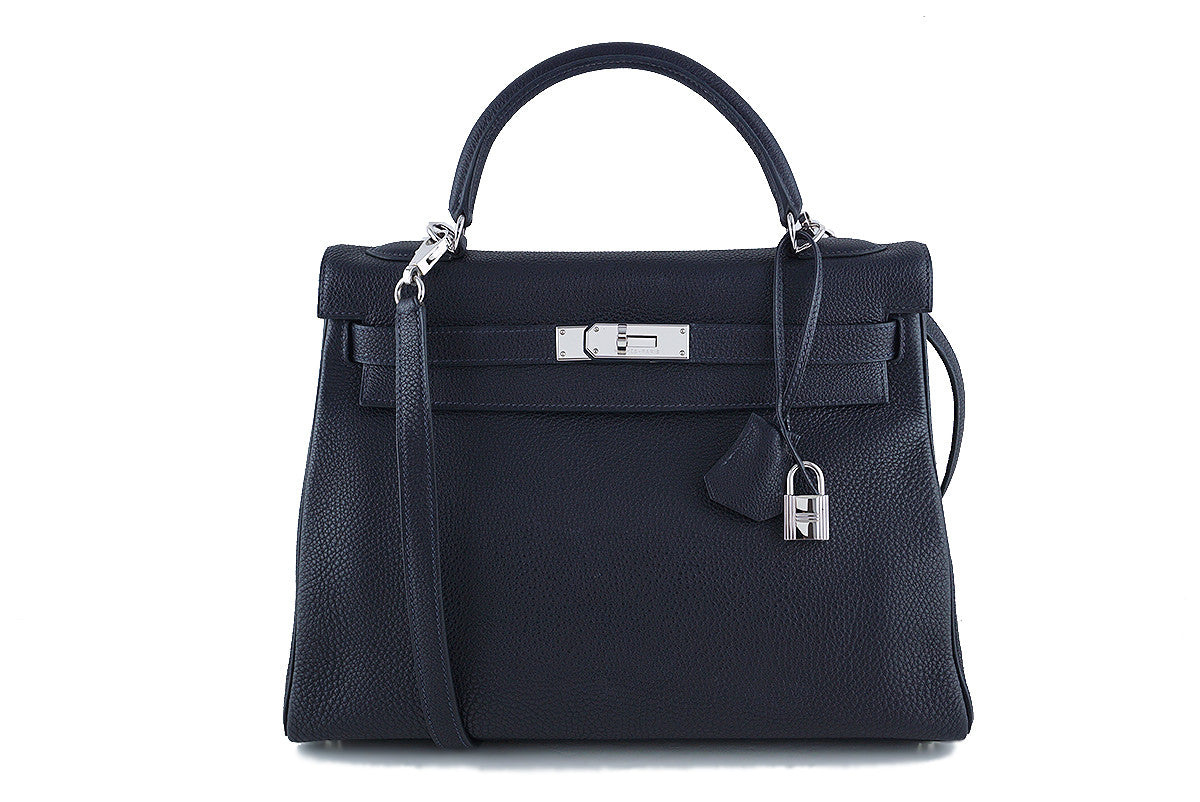 Hermes Indigo-Black 32cm Togo Kelly Retourne Bag