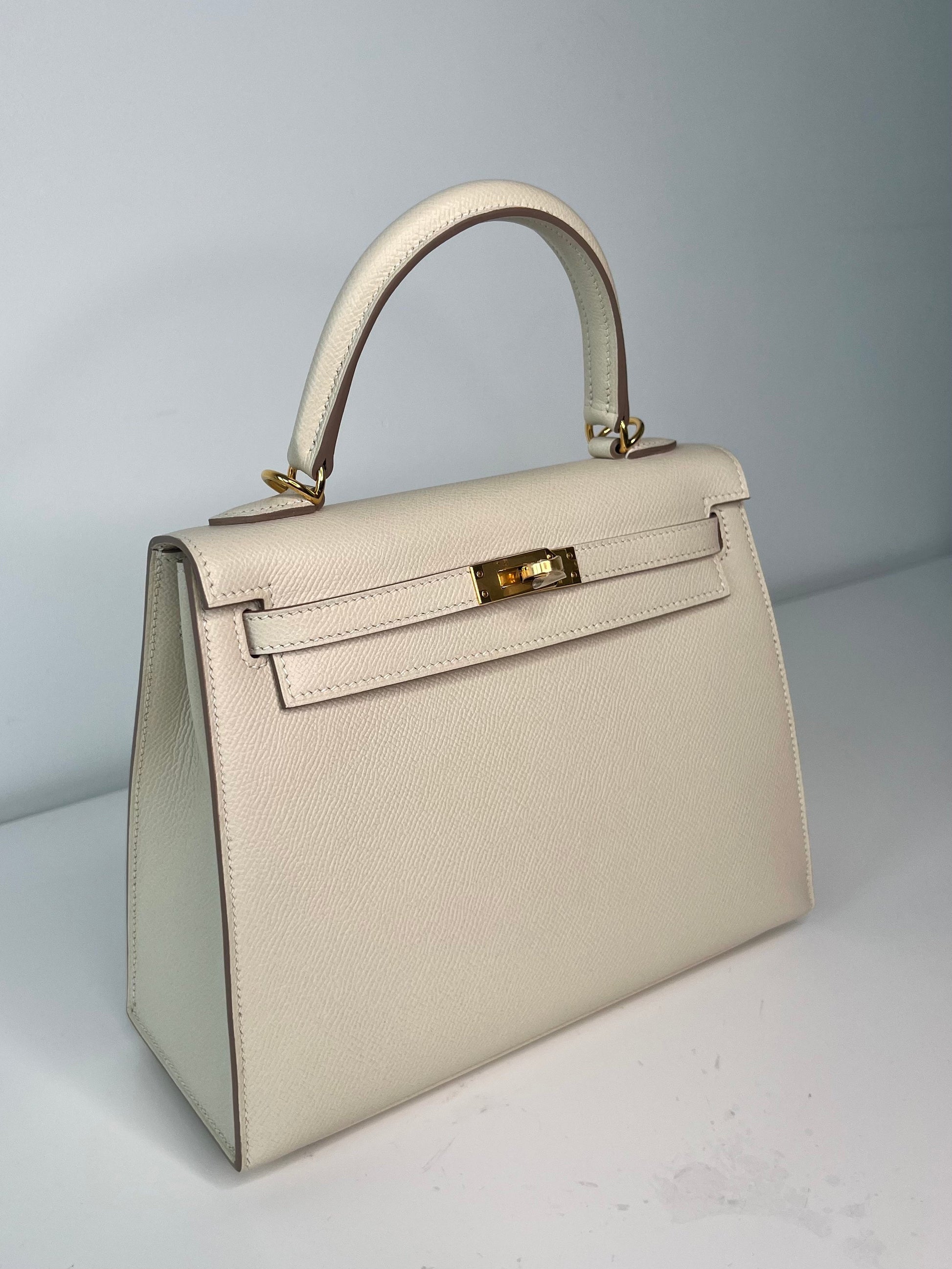 Hermes Kelly 25 Craie Epsom Gold Hardware