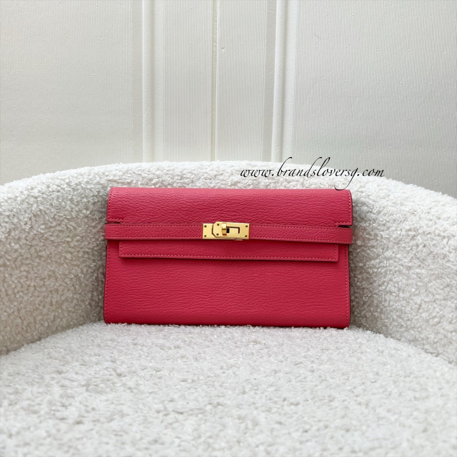 Hermes Classic Kelly Wallet in Rose Lipstick Chevre Leather and GHW