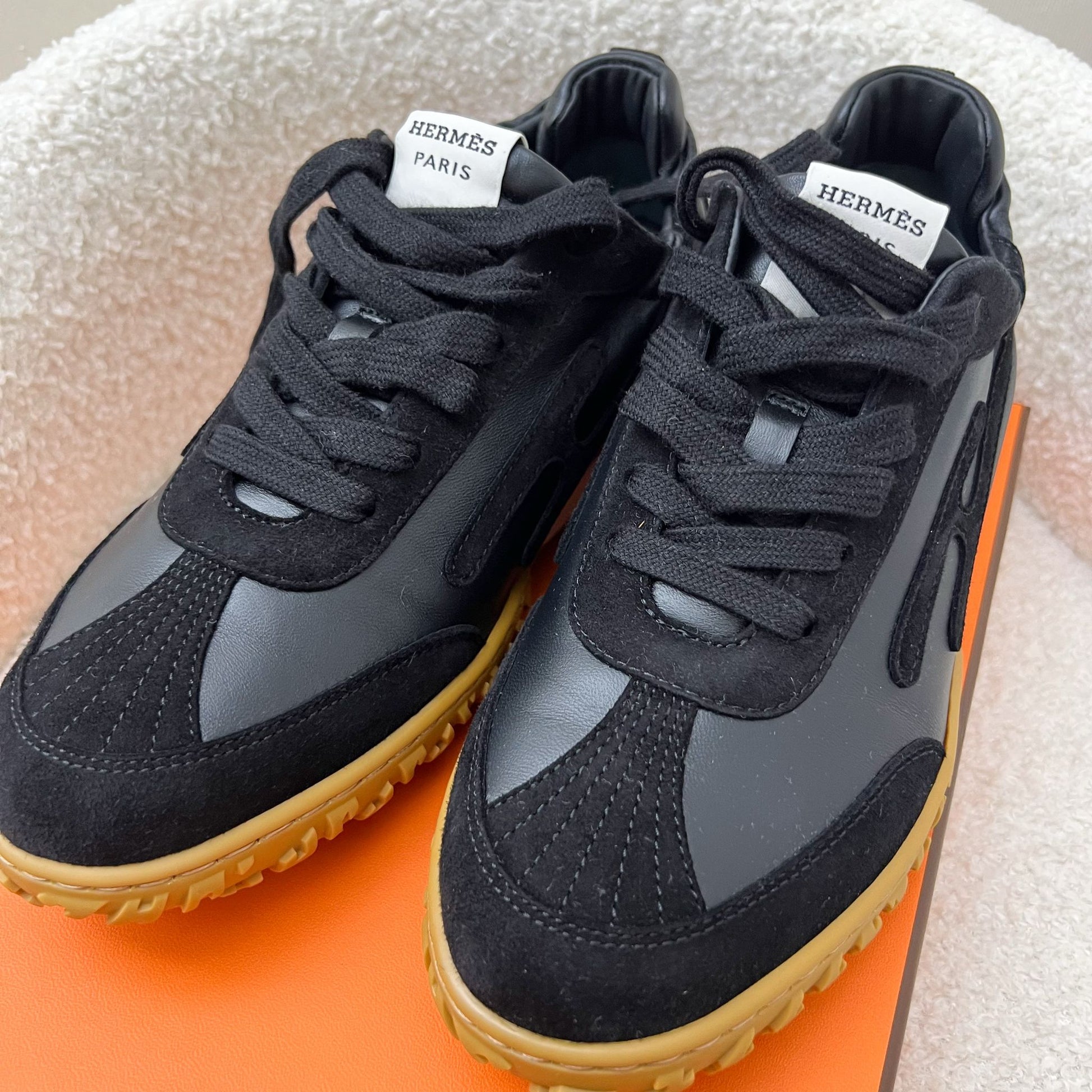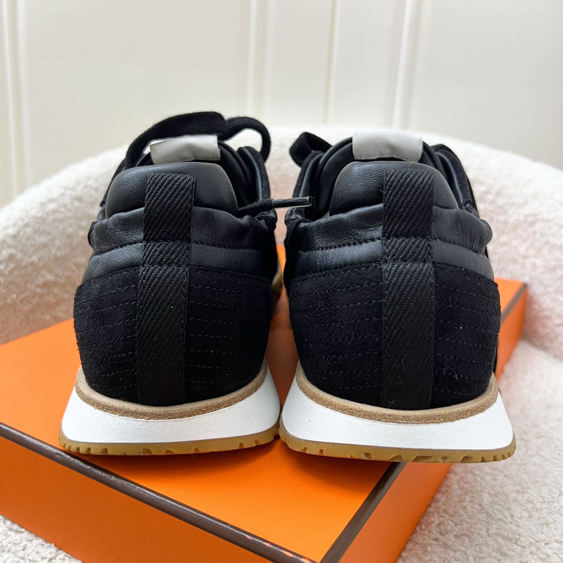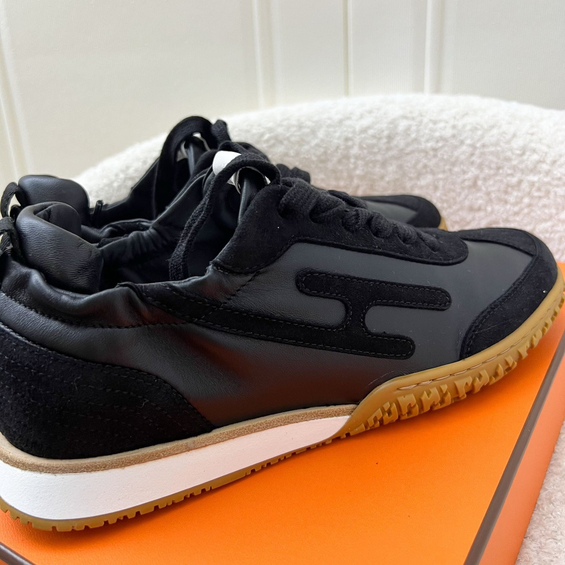 Hermes Jet Ladies Sneakers in Black Noir Nappa Leather and Velours Sz 37