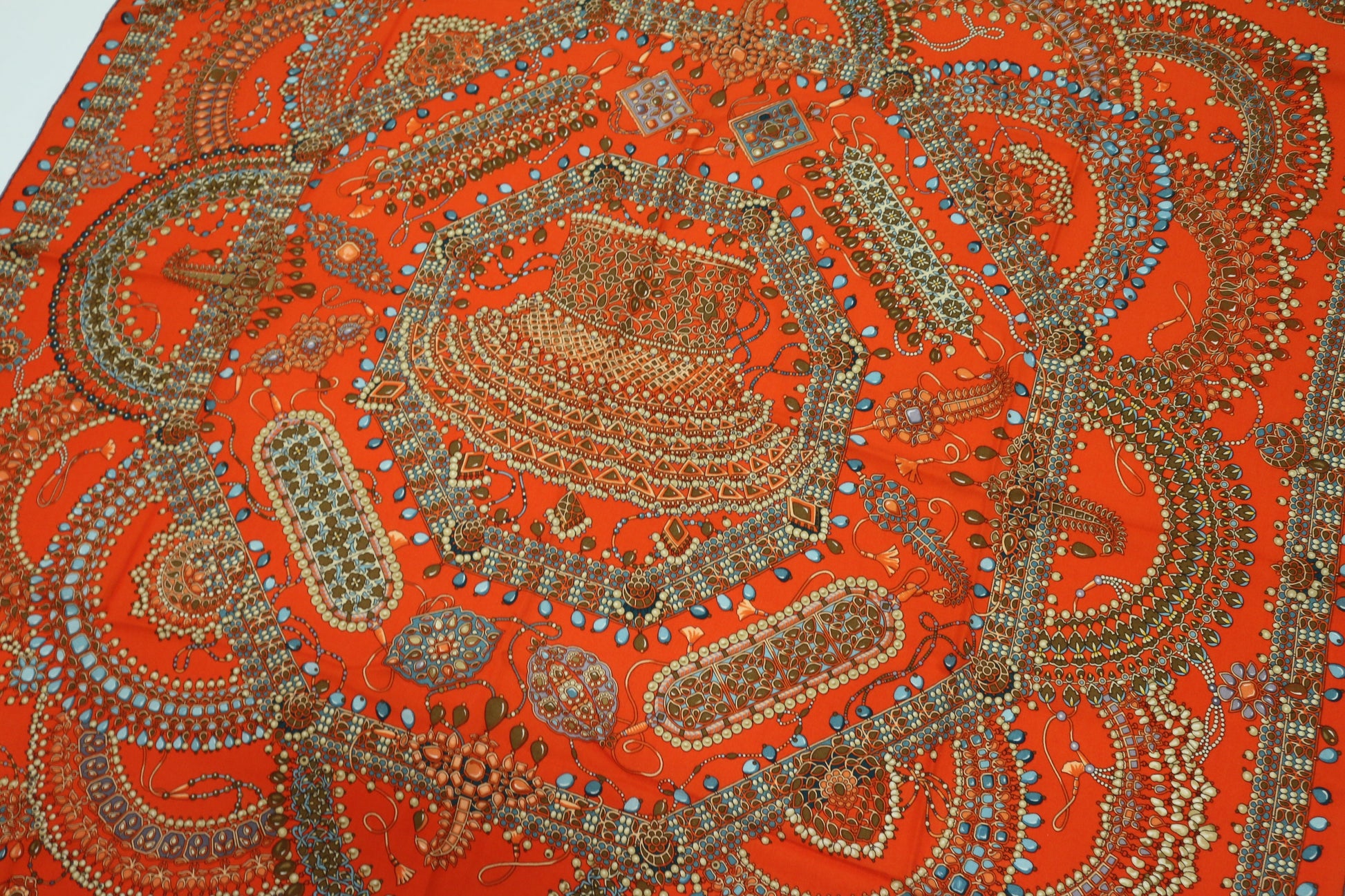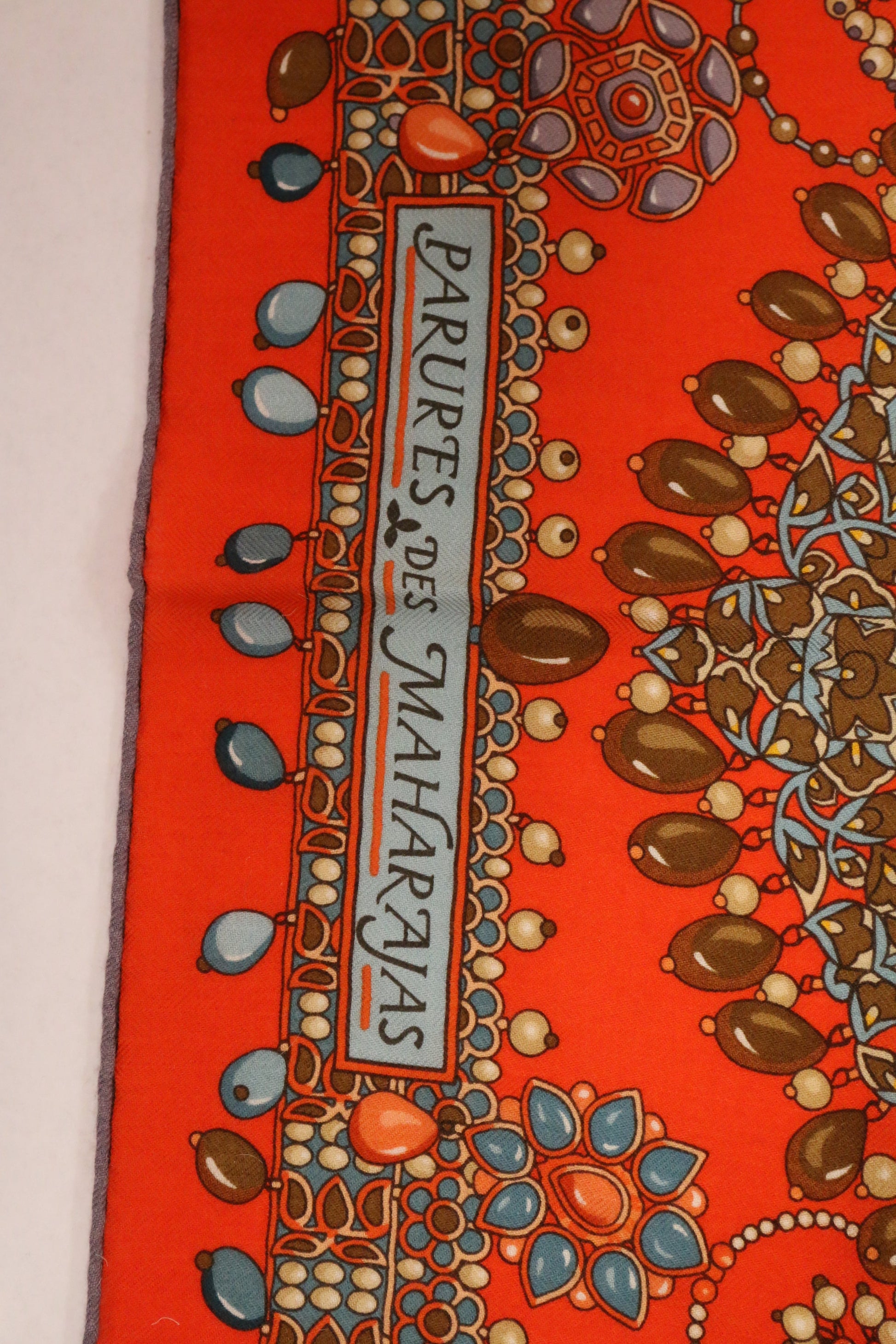 Hermes Maharajas 140cm Cashmere Scarf. Rare pattern. CW 0X reds. Excellent preowned condition. Please see photos with zoom for detail.