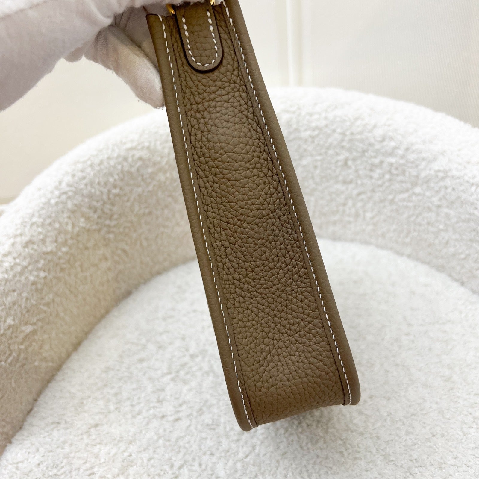 Hermes Mini Evelyne TPM in Etoupe Clemence Leather with Bleu Indigo Strap and GHW