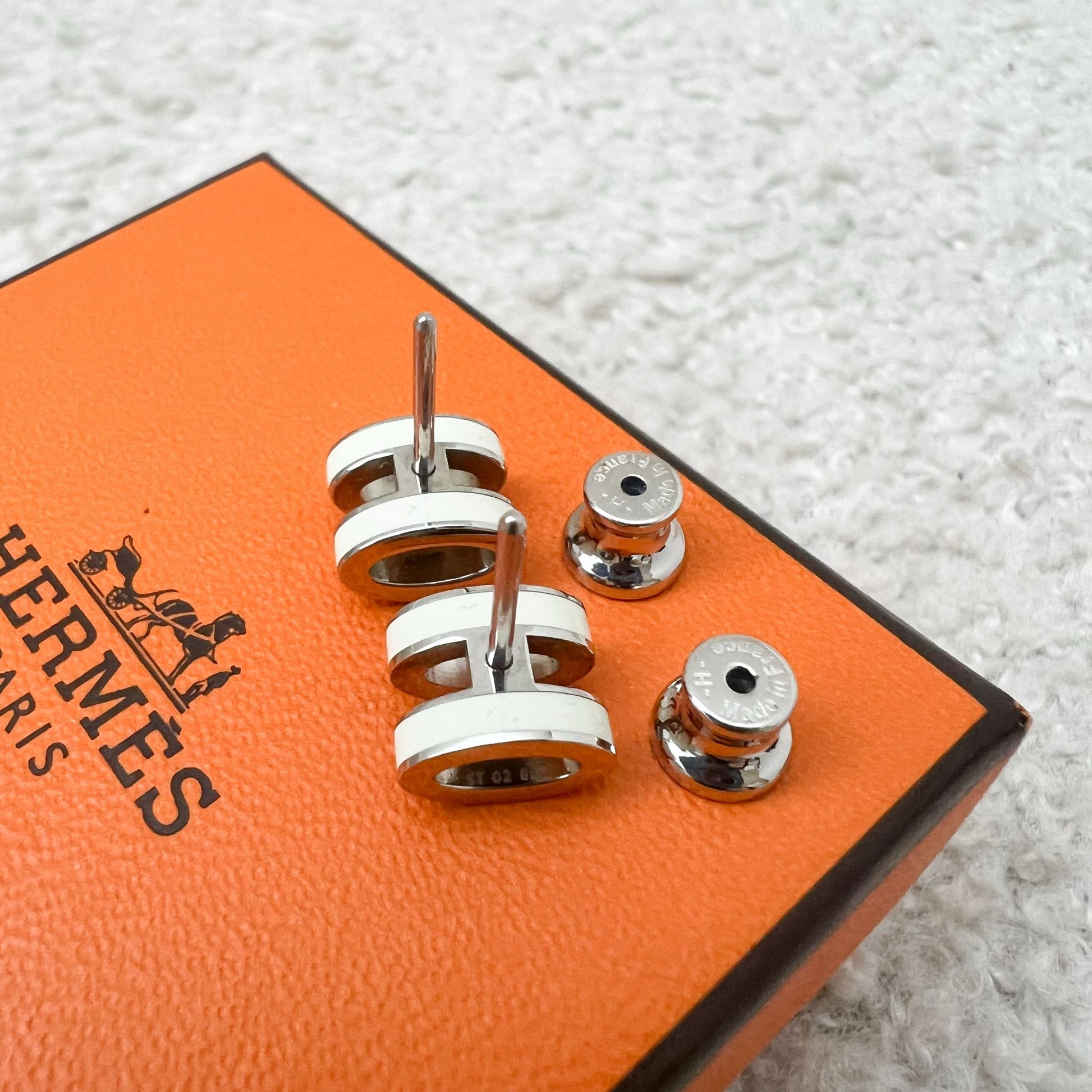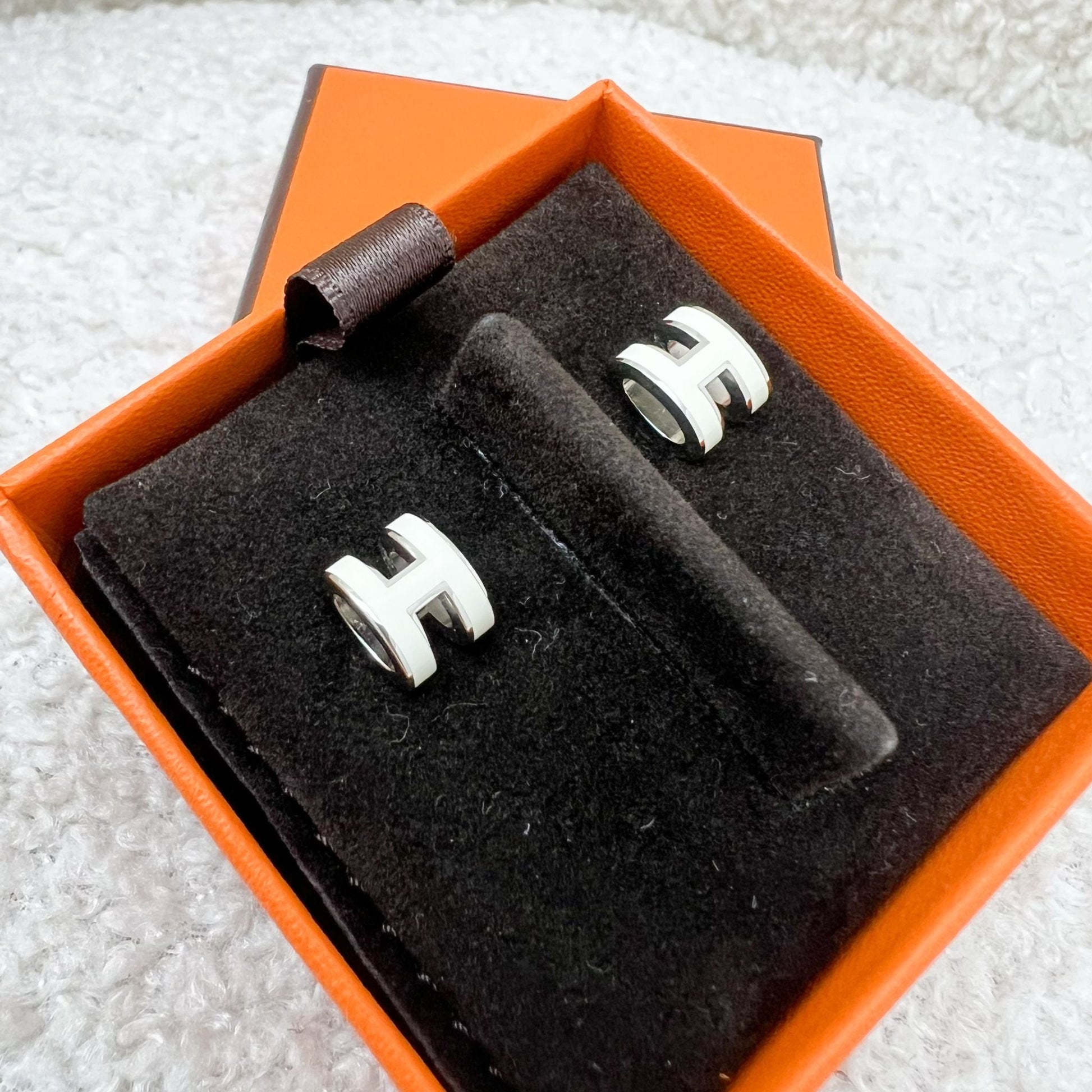 Hermes Mini Pop H Earrings in Blanc Enamel and PHW