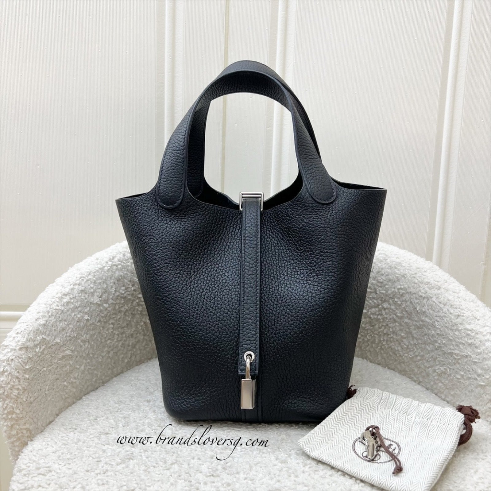 [Havik Shops New] Hermes Picotin 18 in Black Noir Clemence Leather and PHW