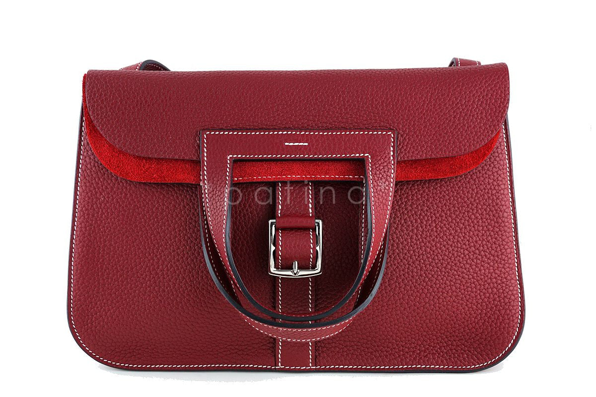 This Hermes Rouge H Halzan 4-way Buckled Shoulder Bag is extremely difficult to find in the boutiques.