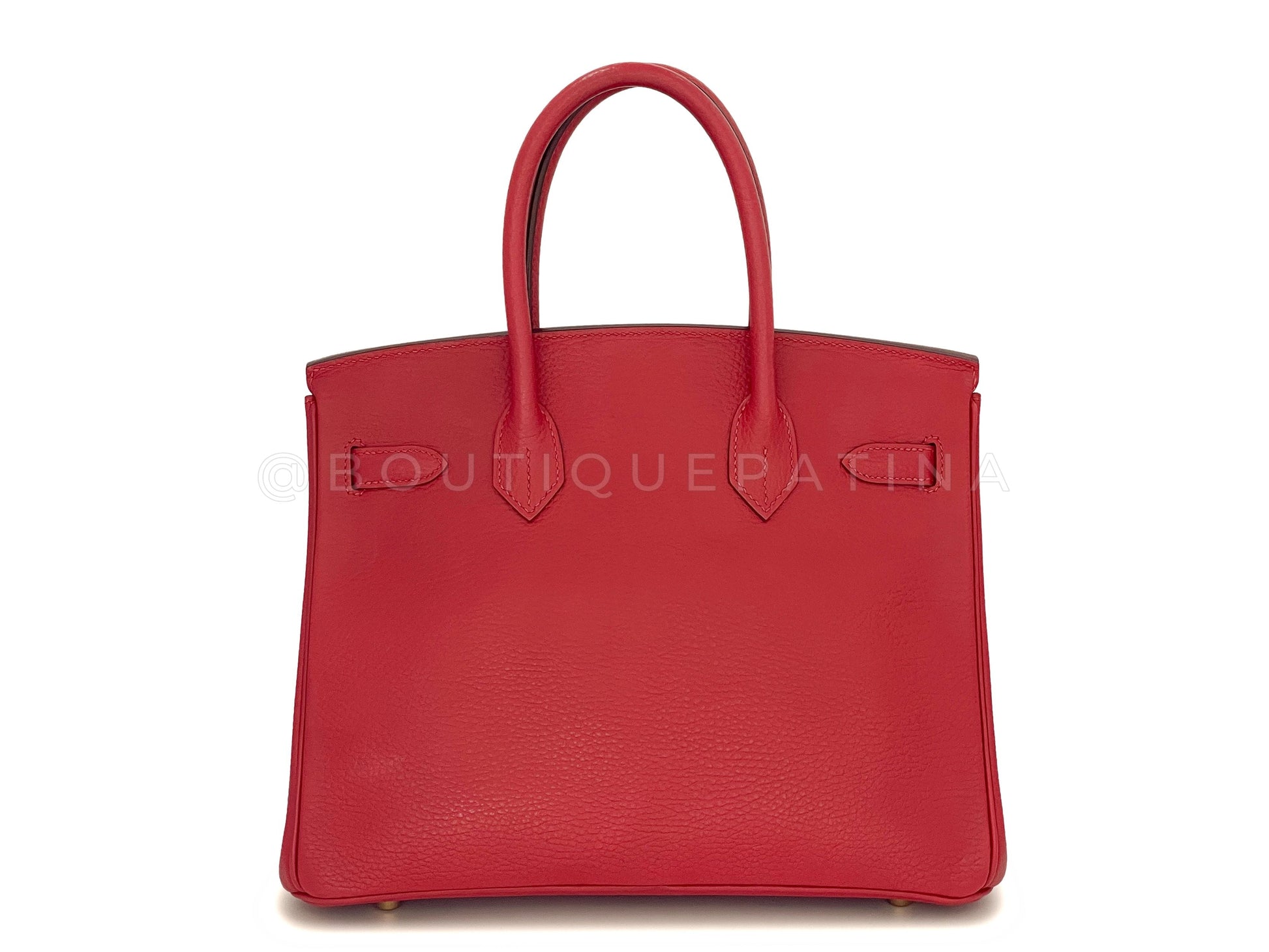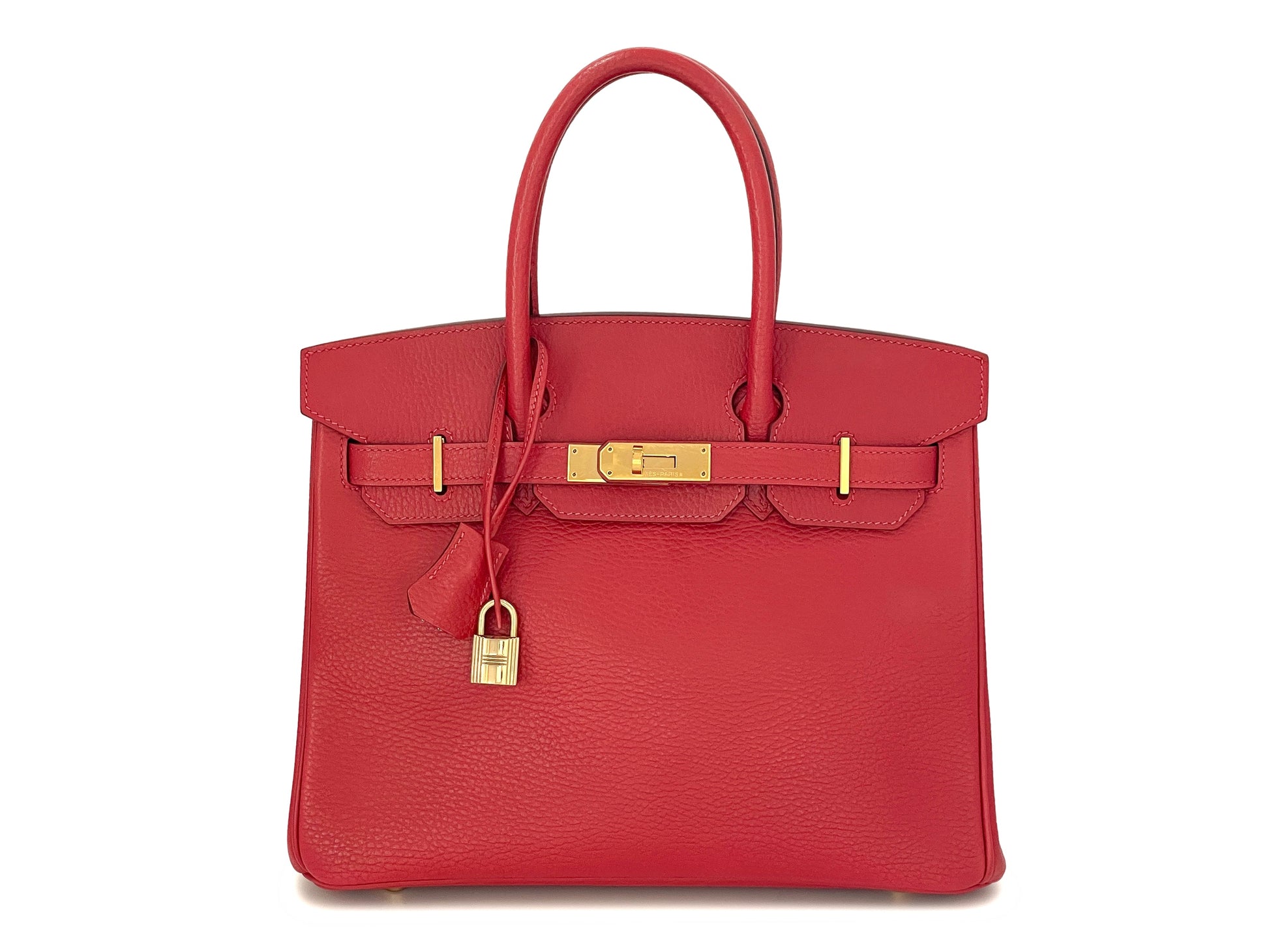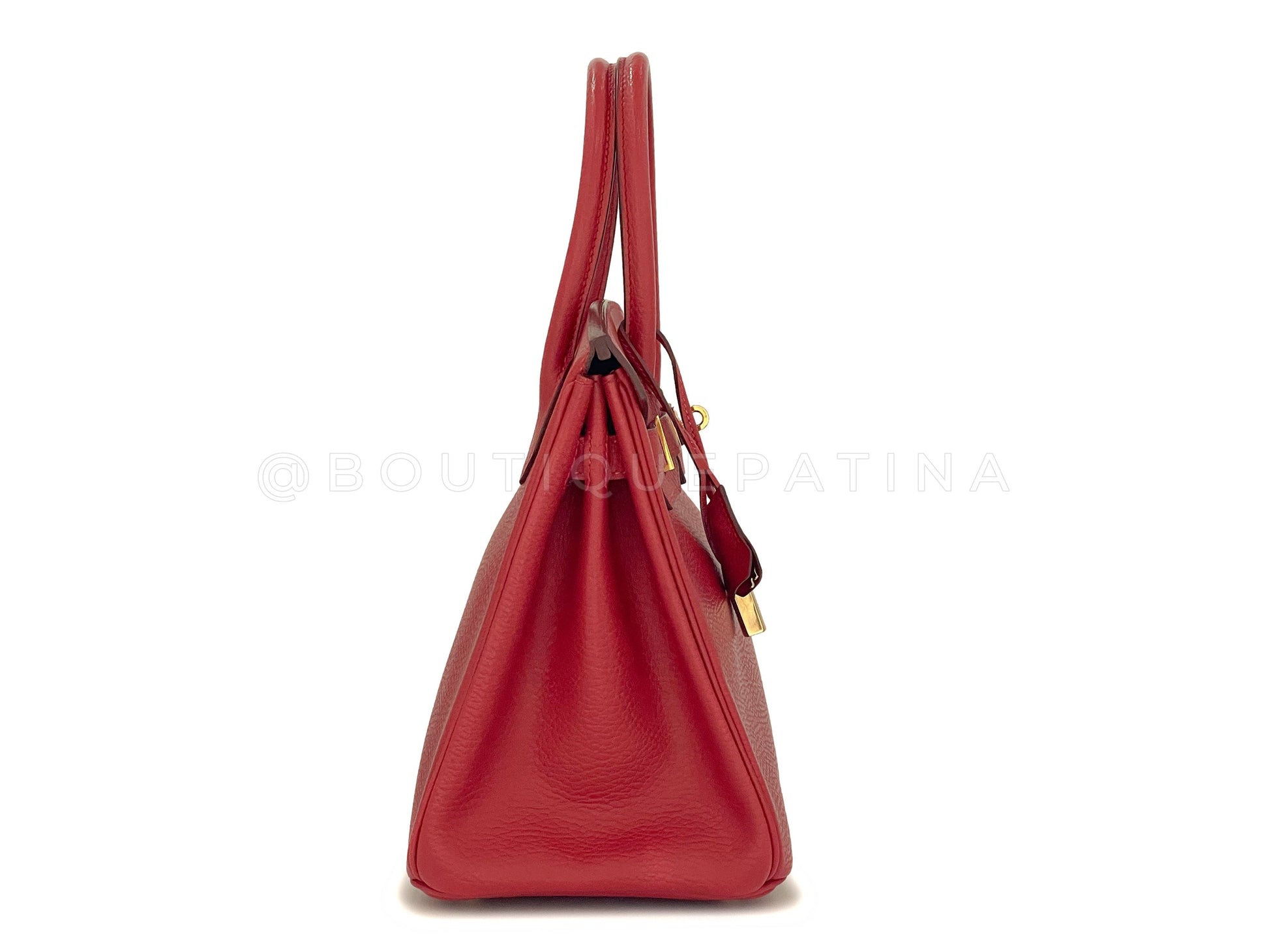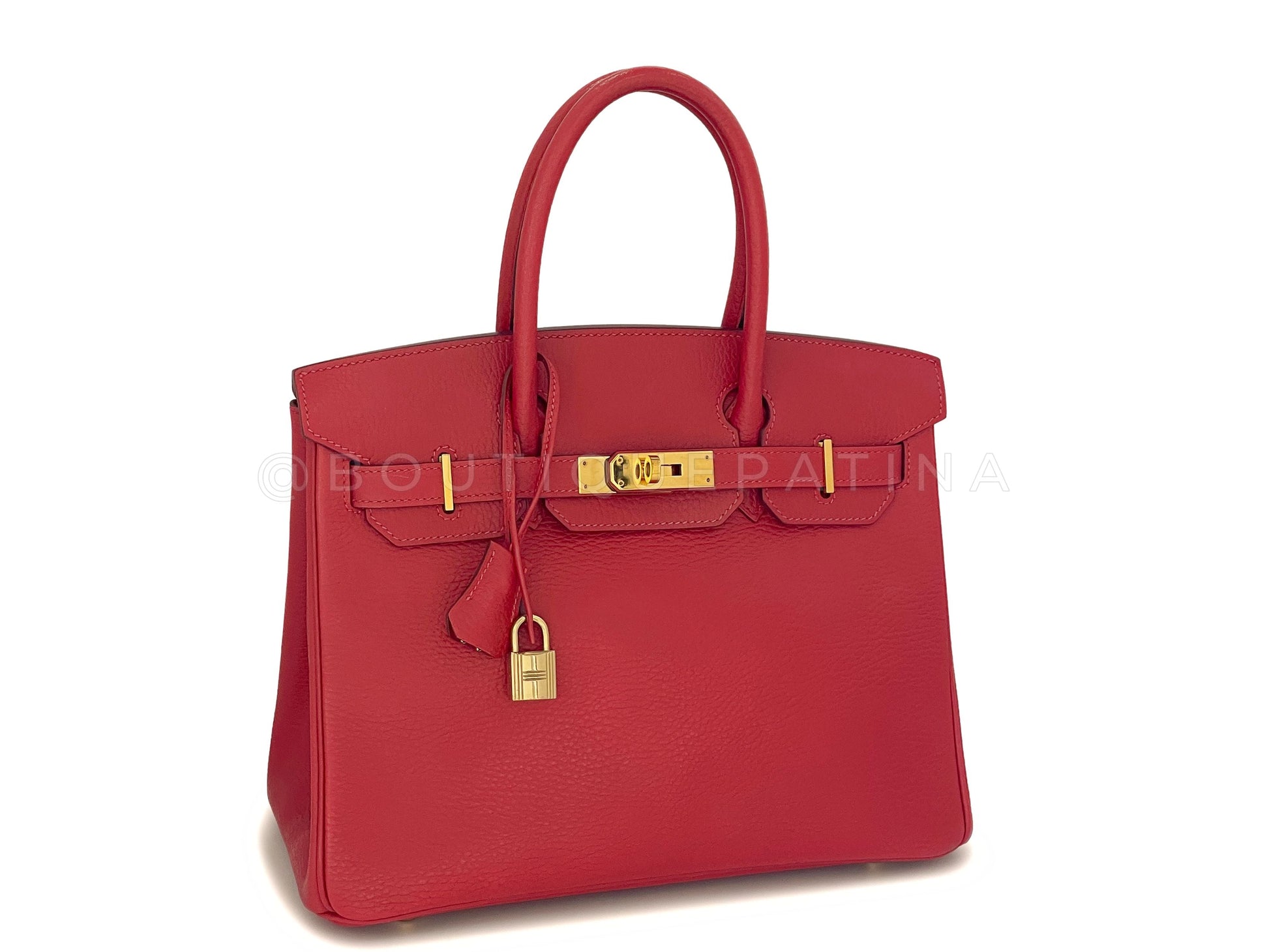 Hermes Rouge Vermillion Ardennes 30cm Birkin Bag GHW Red