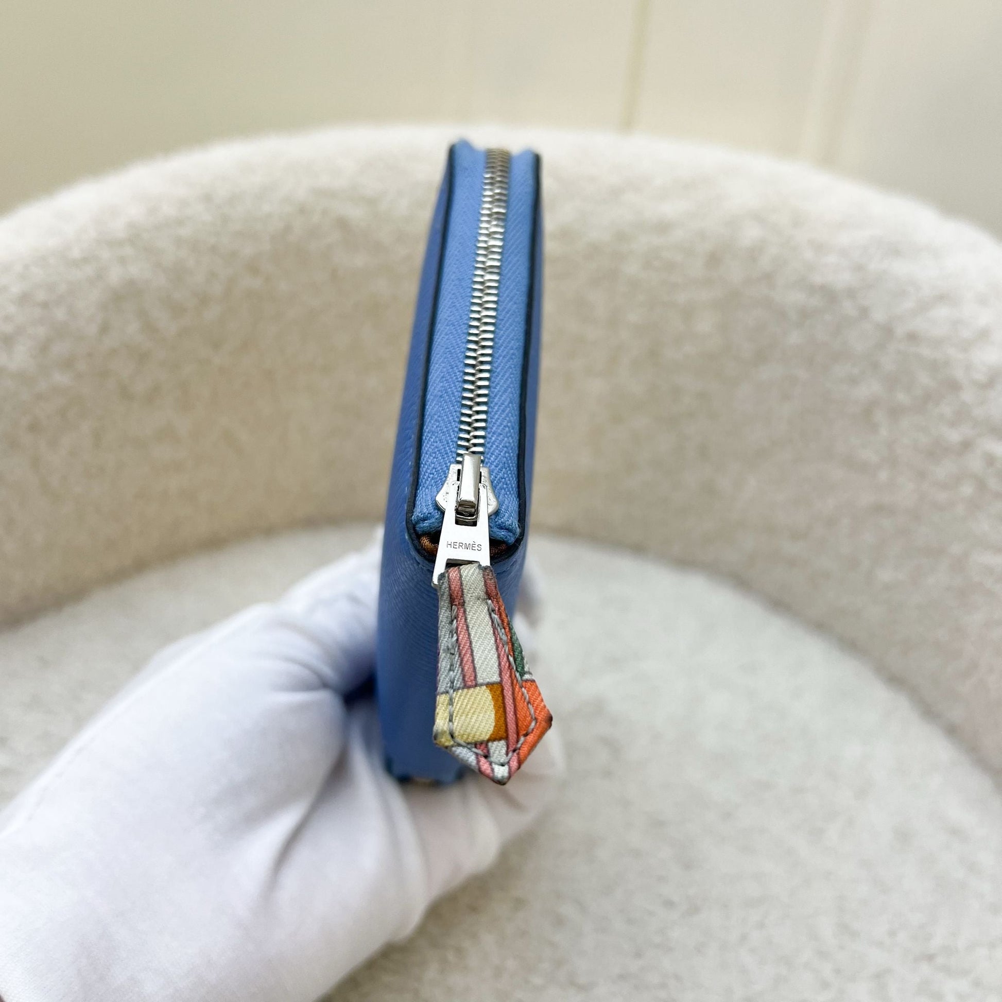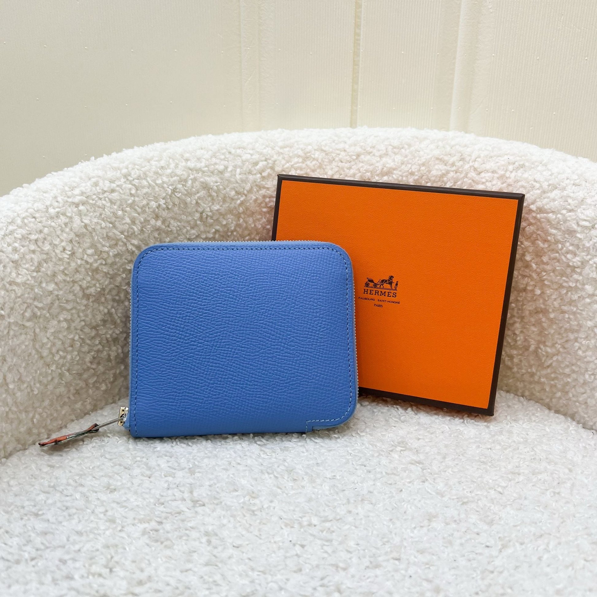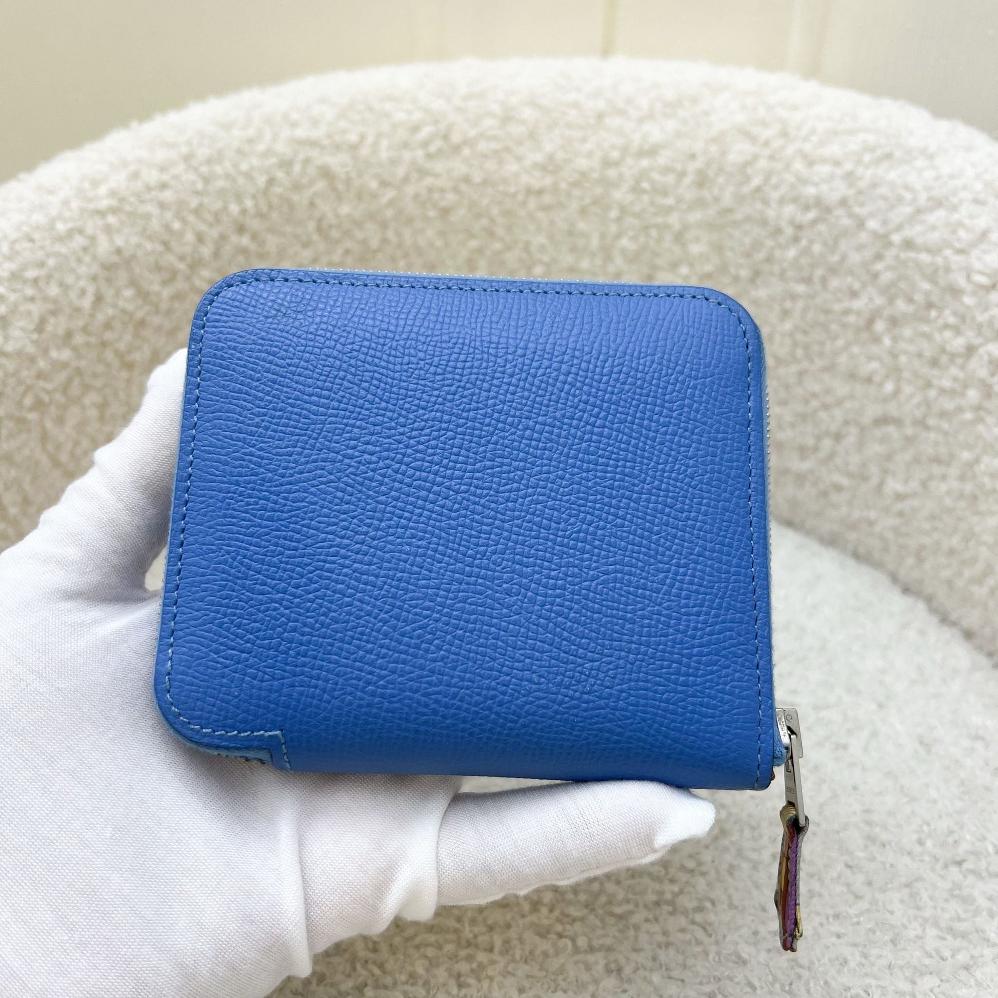 Hermes Silk in Compact Wallet in Bleu Paradis Epsom Leather and PHW