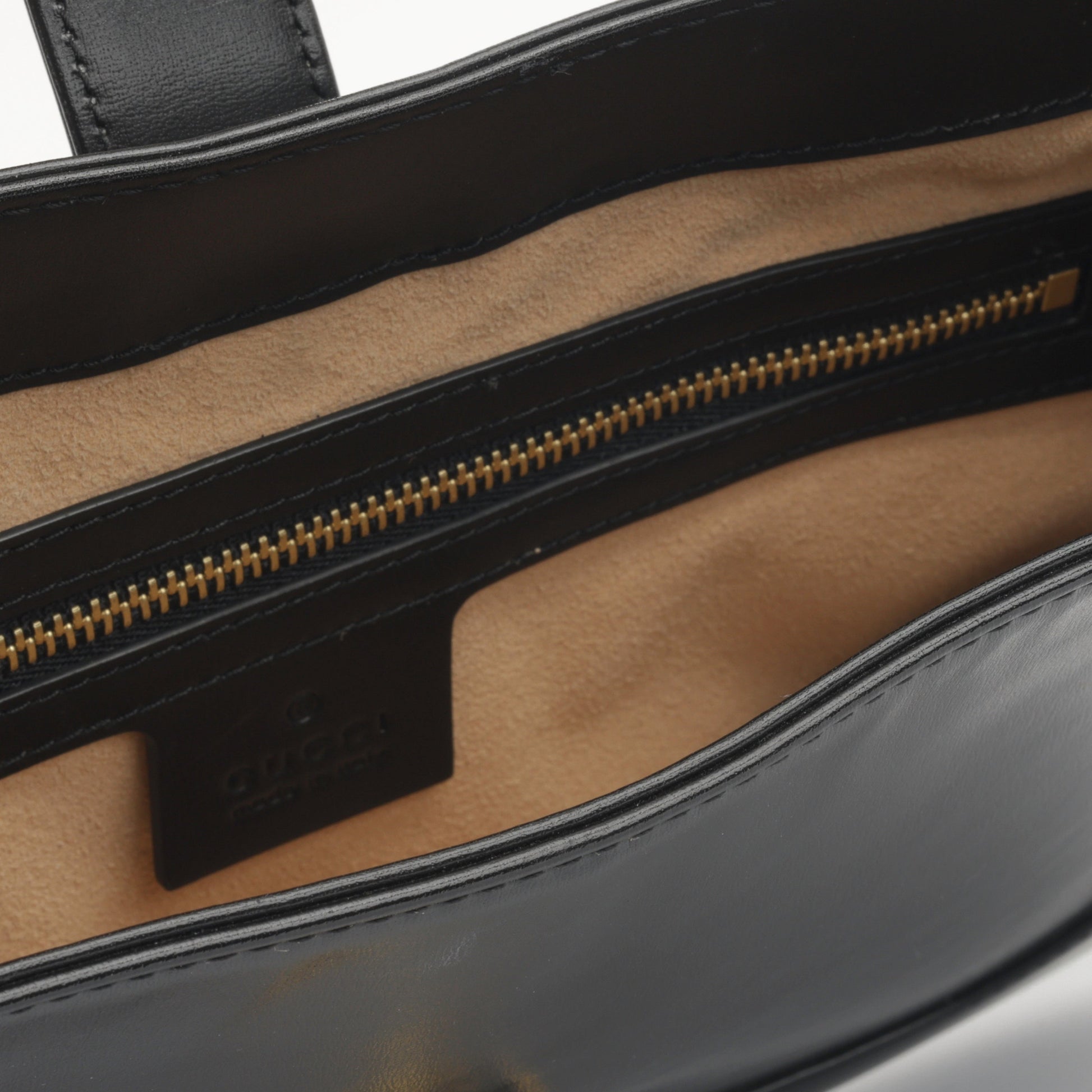 - Gucci embossed leather tab