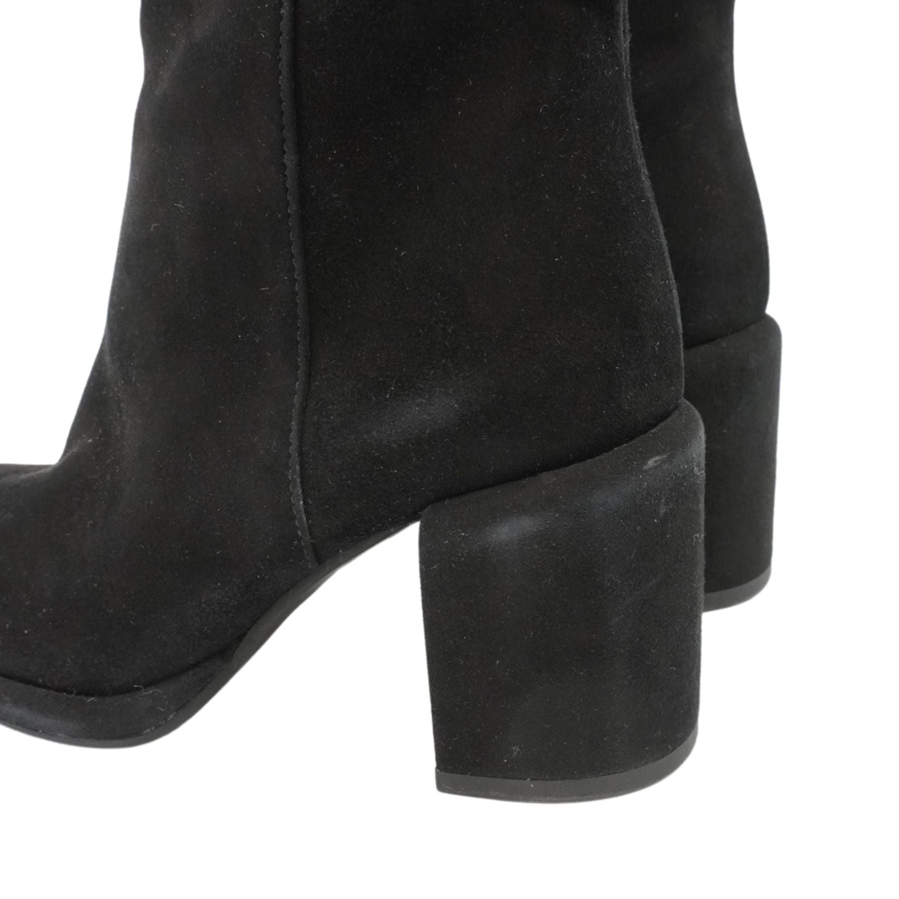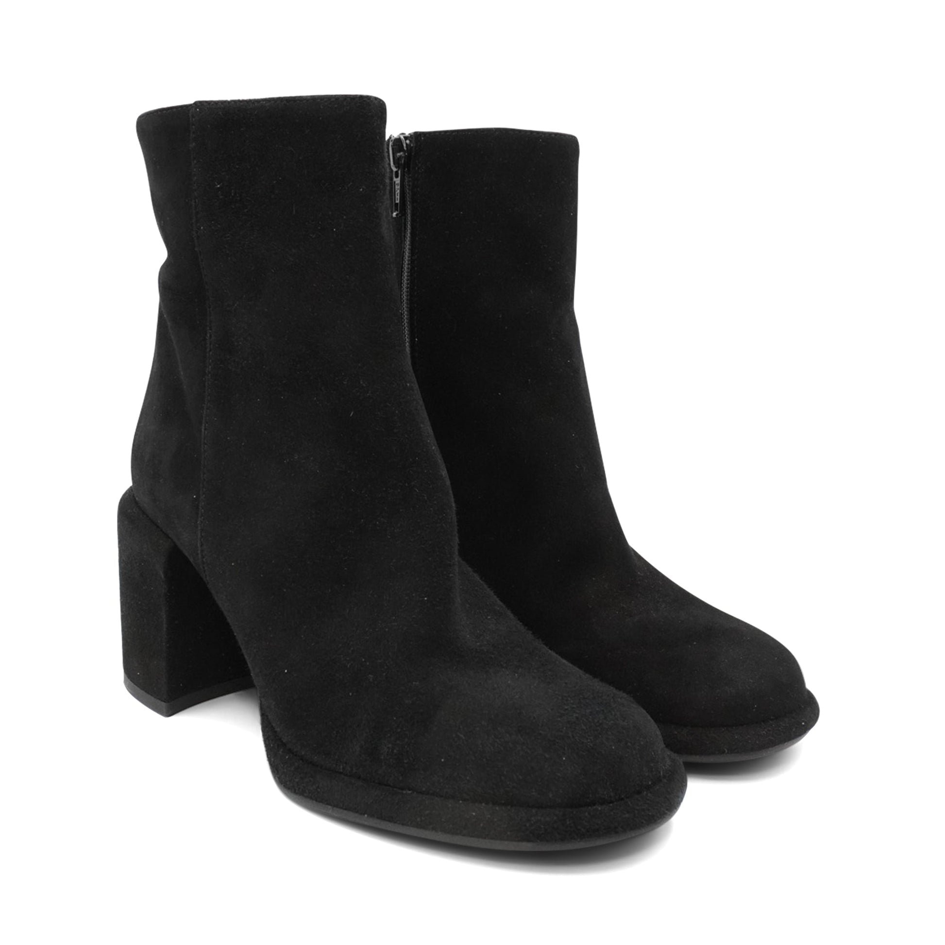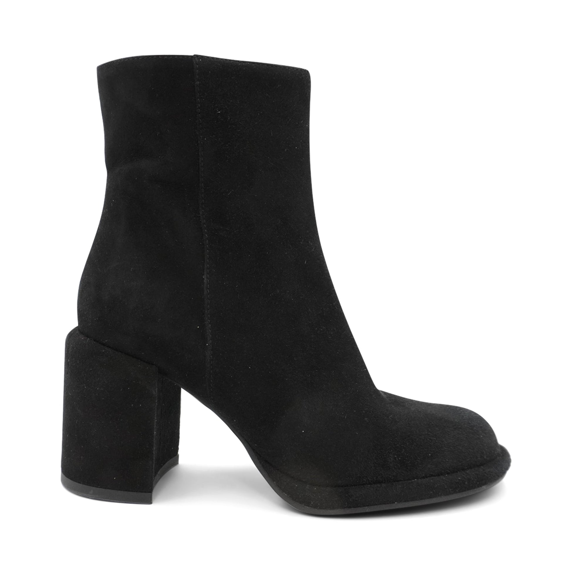 La Canadienne 'Avi' boots in black suede with a chunky heel and an inner zip opening.