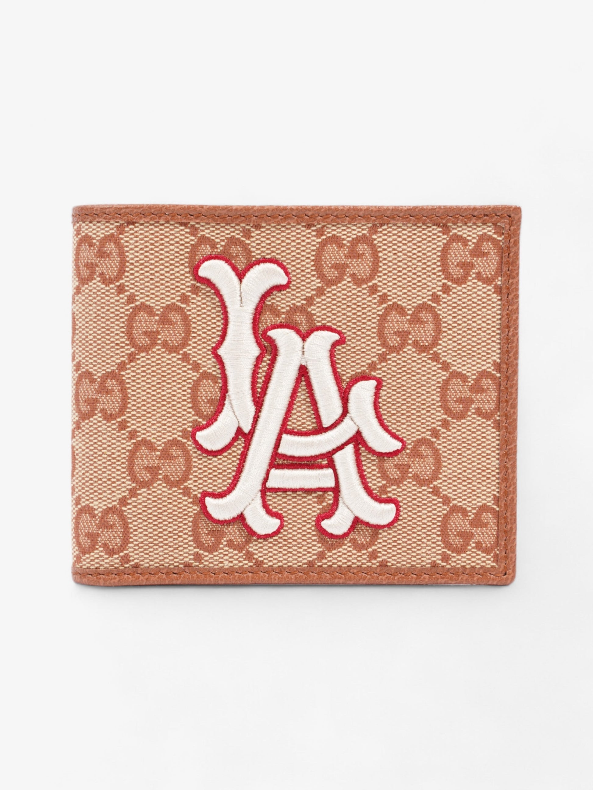 Gucci LA Dodgers Bi-Fold Wallet Beige / Brown Canvas