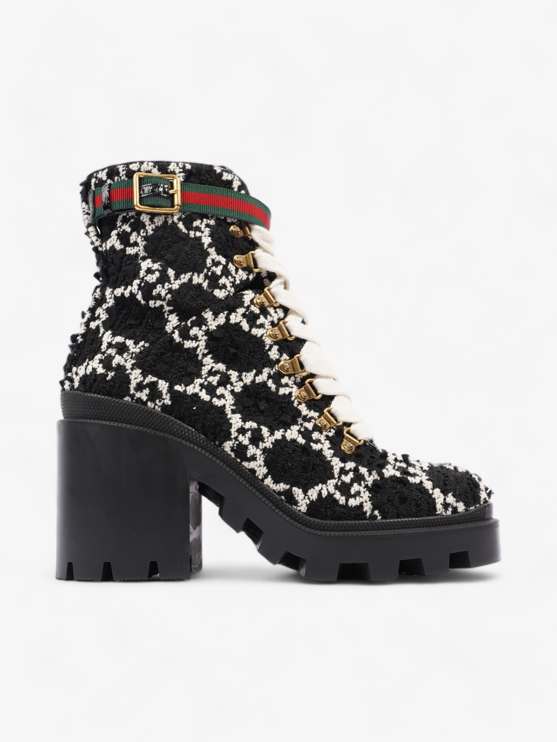 Gucci Lace Up Ankle Boots 90mm Black / White Tweed EU 41 UK 7