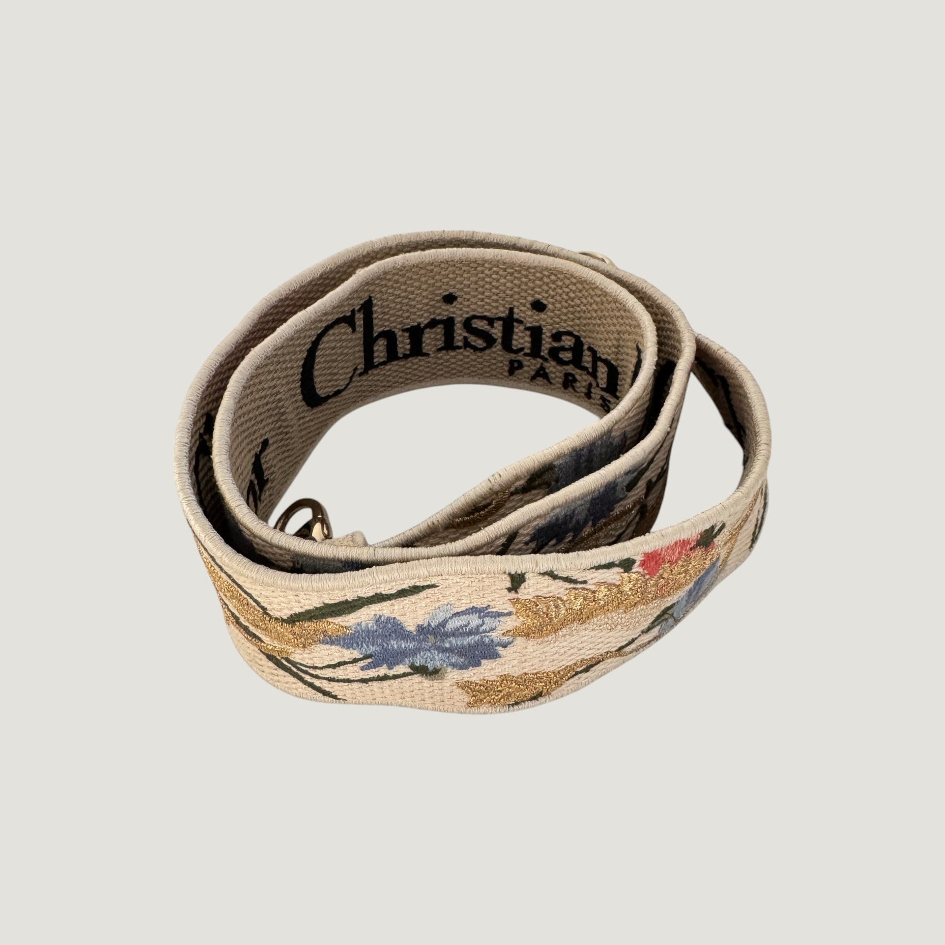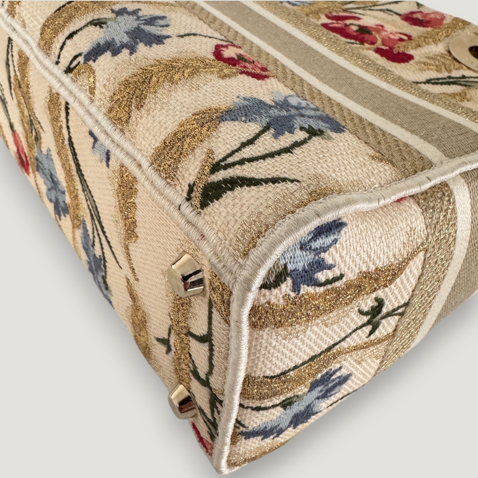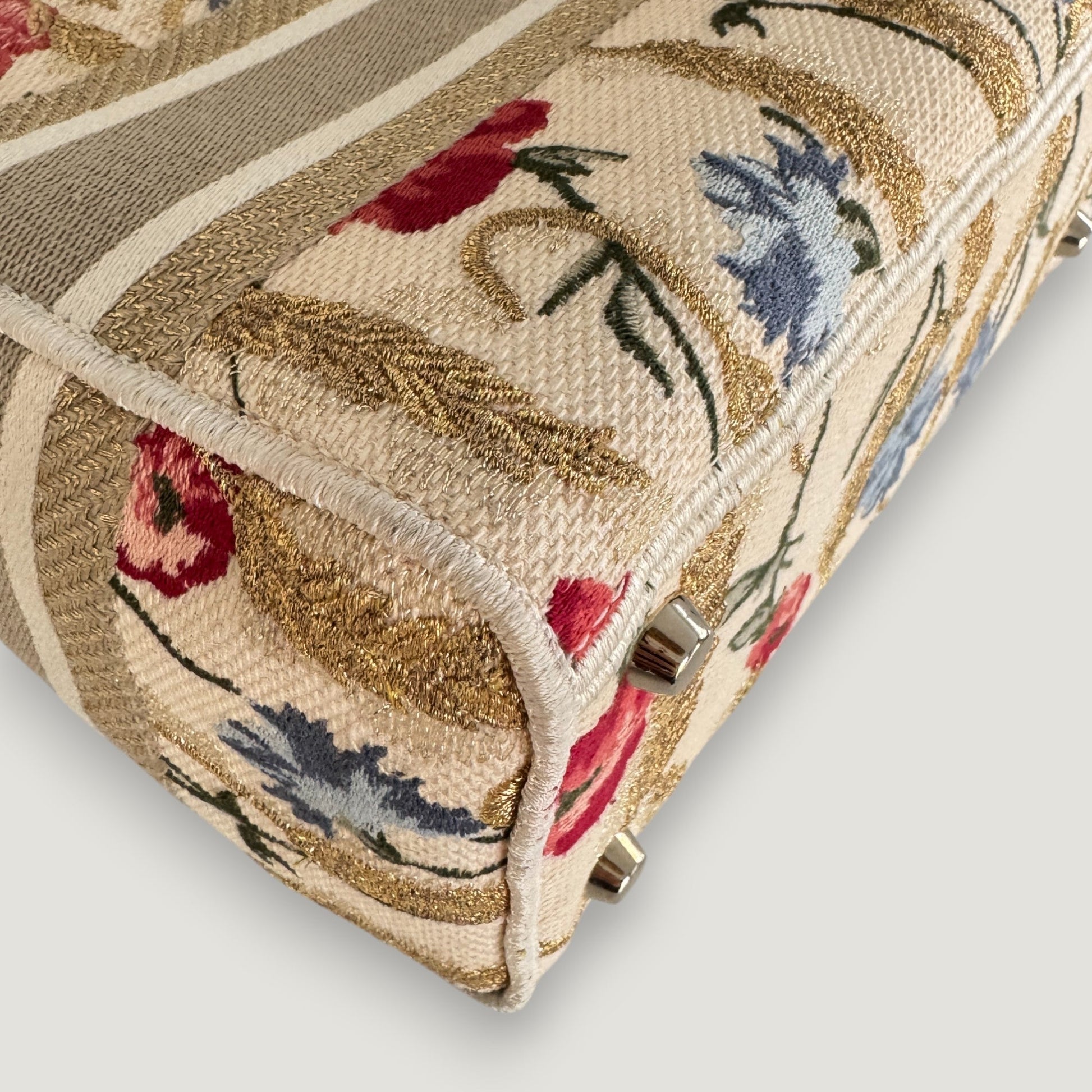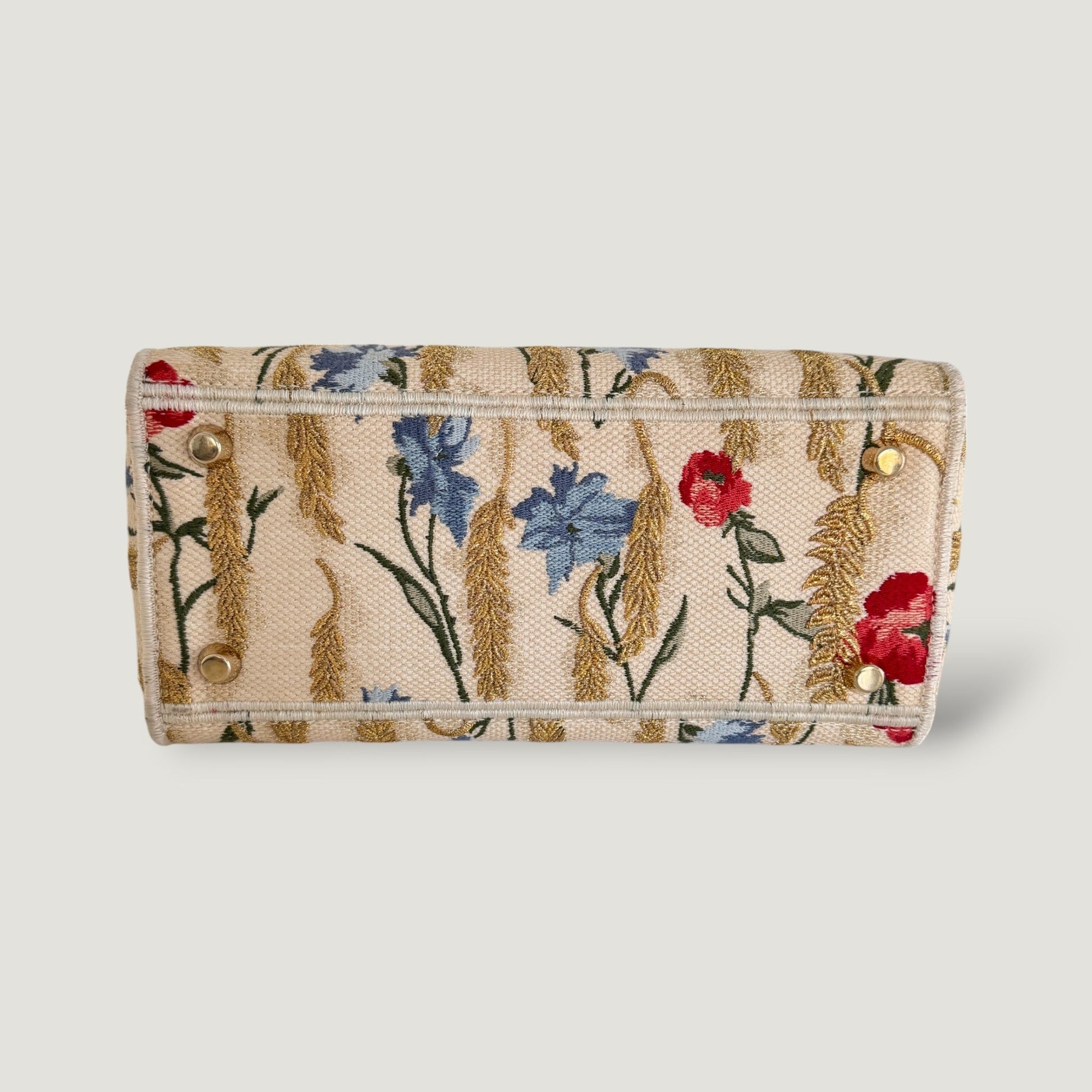 - Materials: fabric, gold-toned hardware