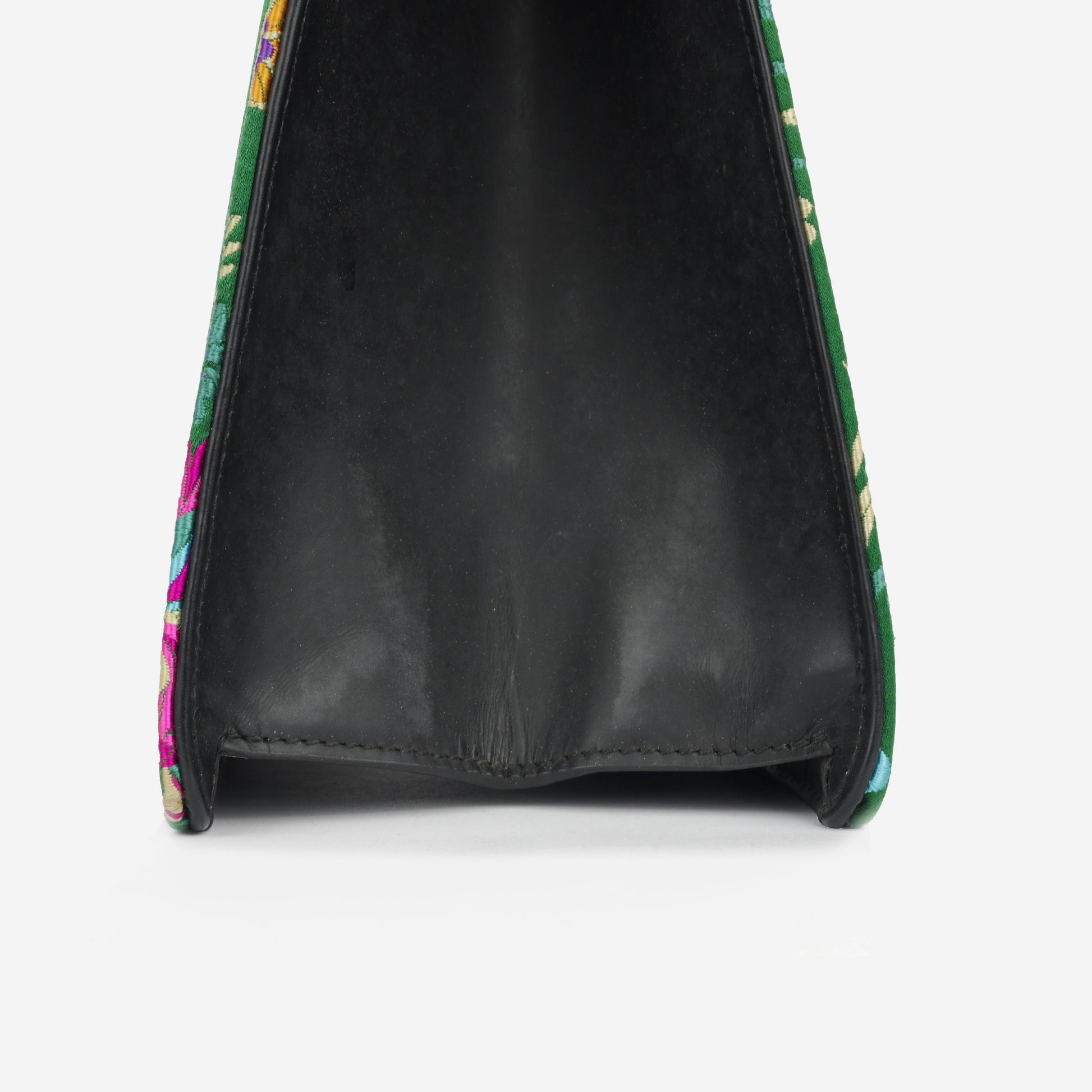With a gold buckle chain prominently depicted on the front flap, the Sylvie is luxurious, glamorous and the perfect compliment to anything you may have in your wardrobe. Crafted from satin green with floral pattern adorned with gold-tone hardware, which create a unique piece to your wardrobe.