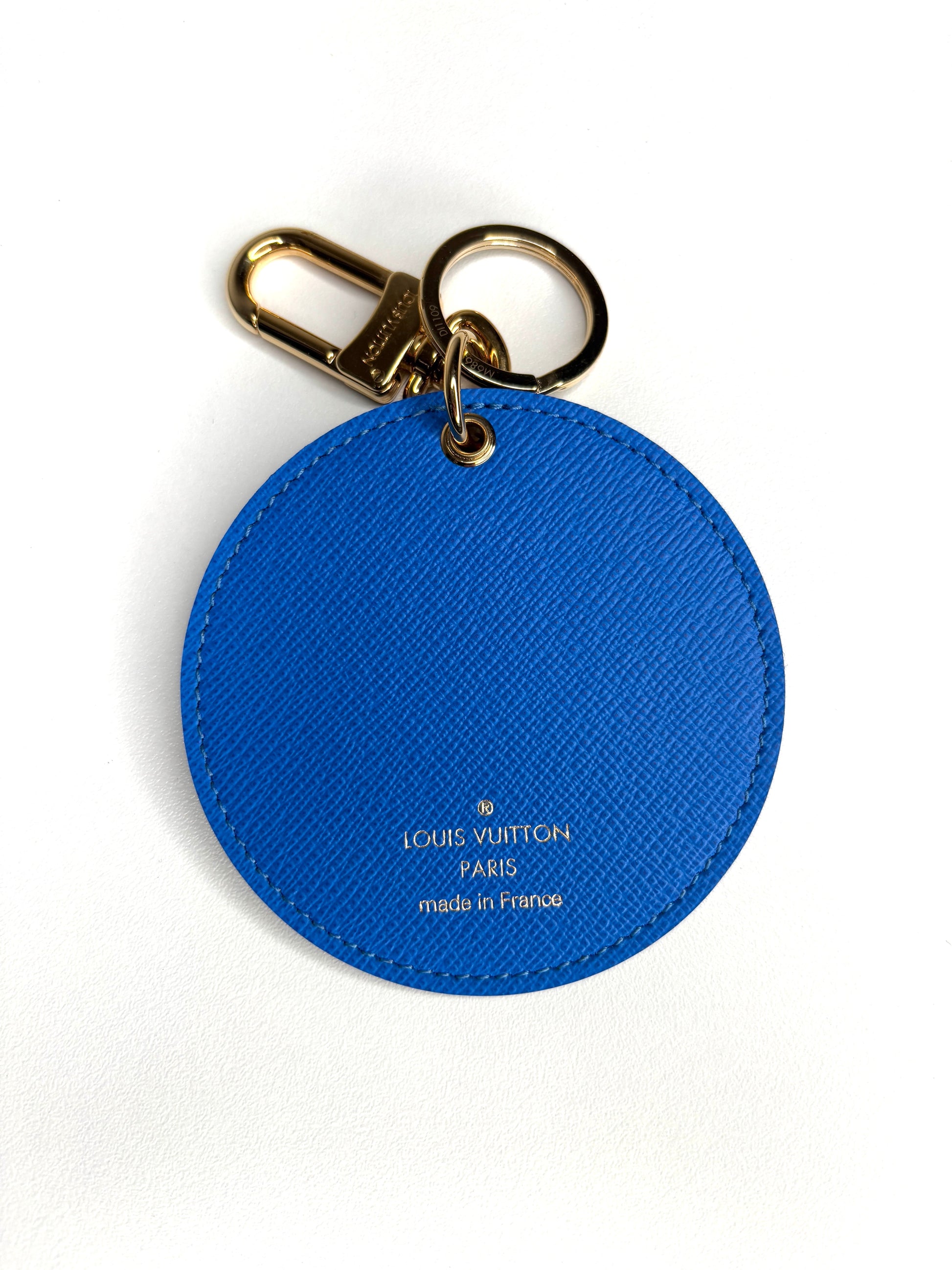 - Crafted of LV monogram on coated canvas with bright blue grosgrain leather on the reverse