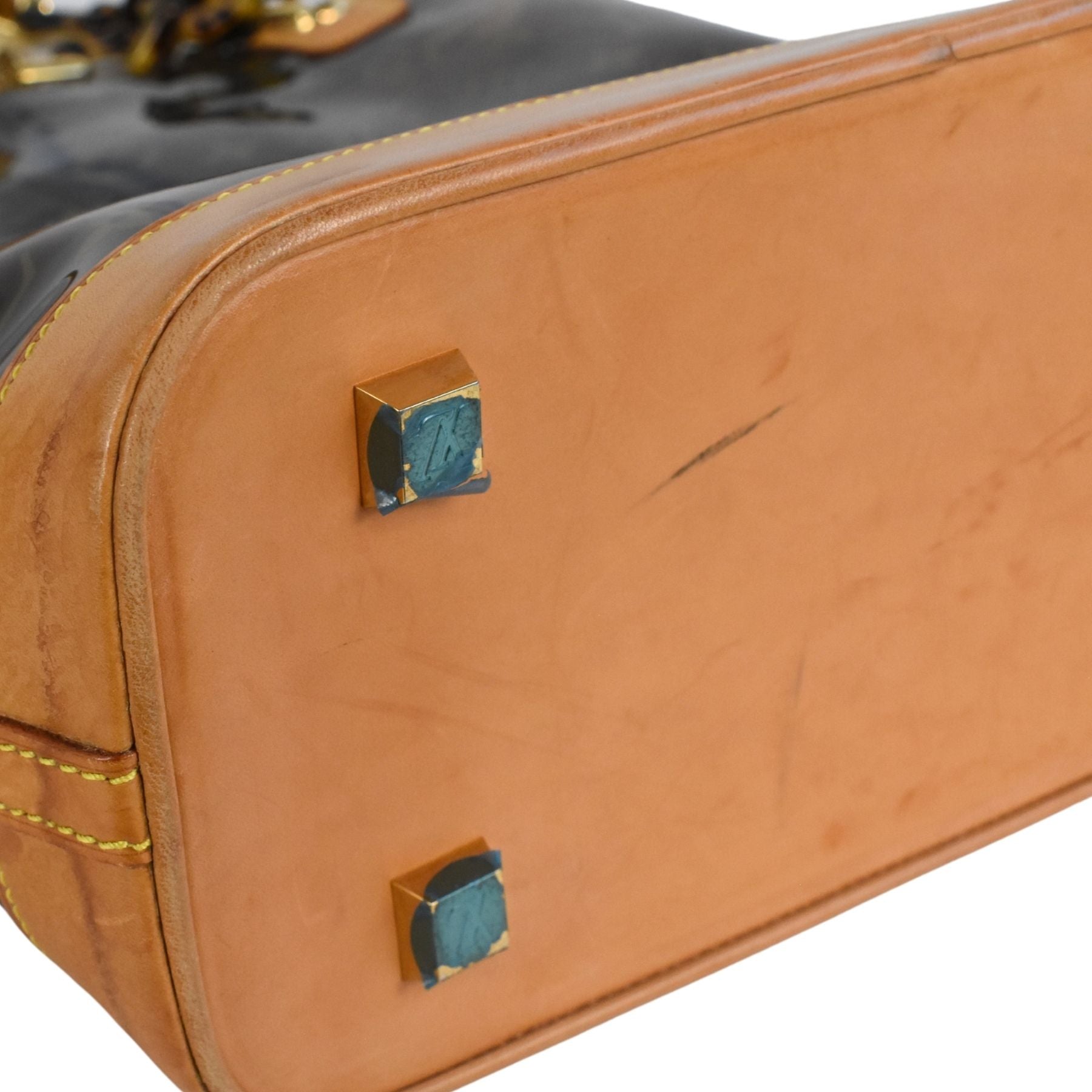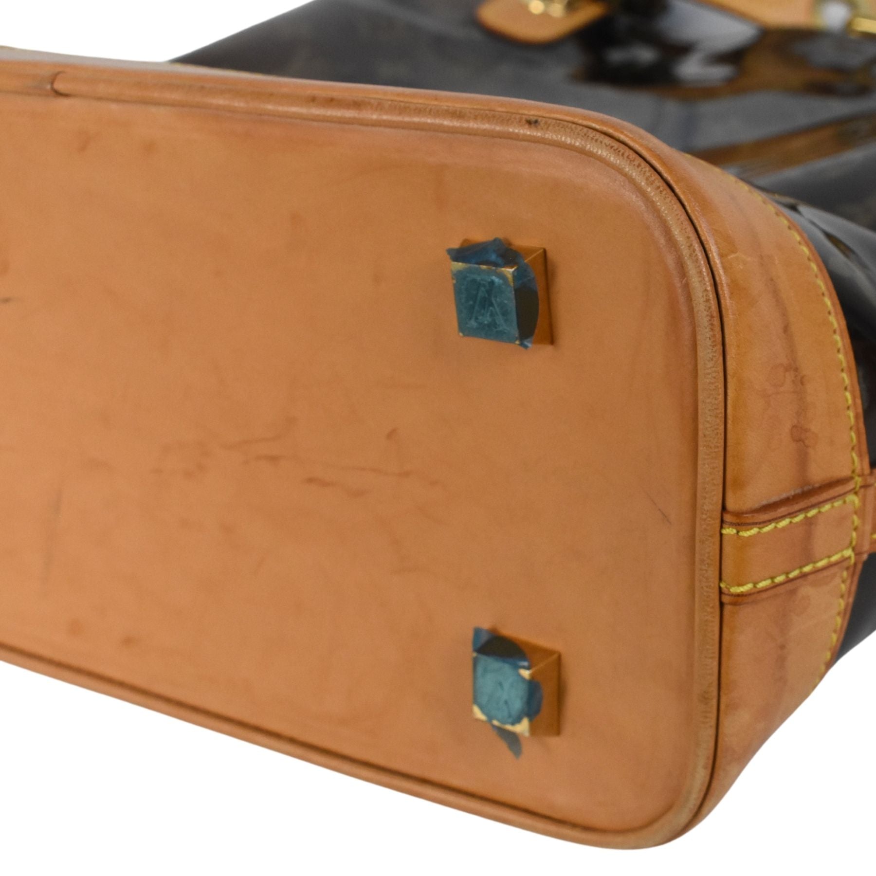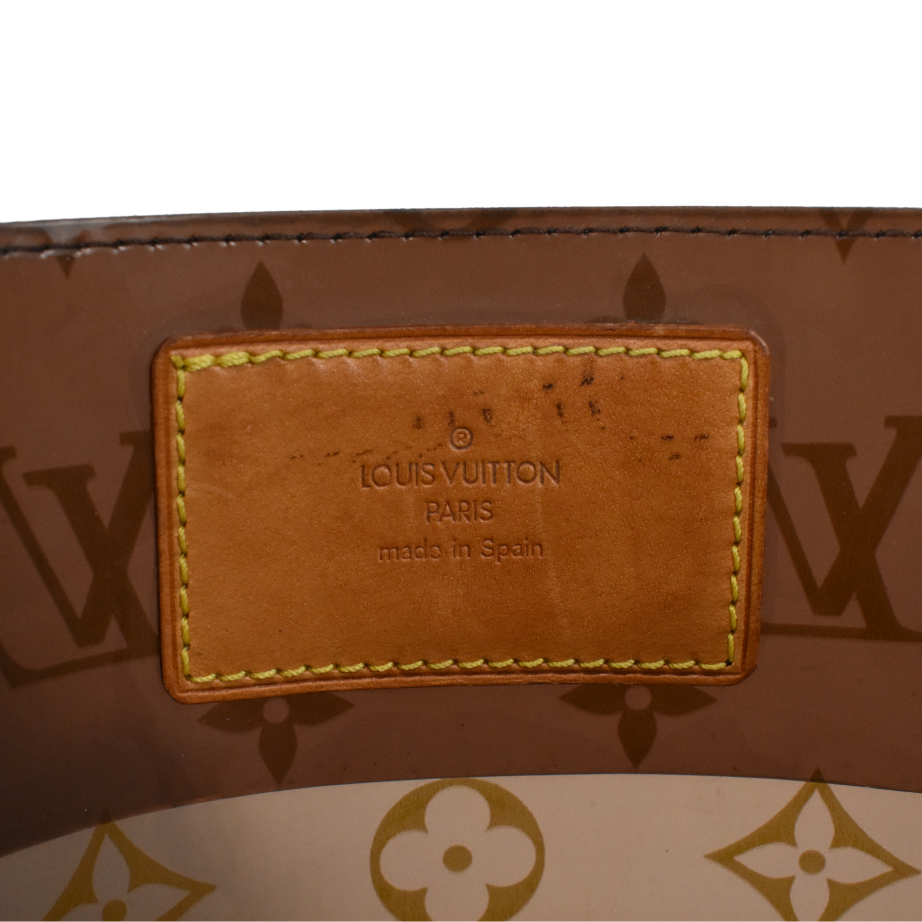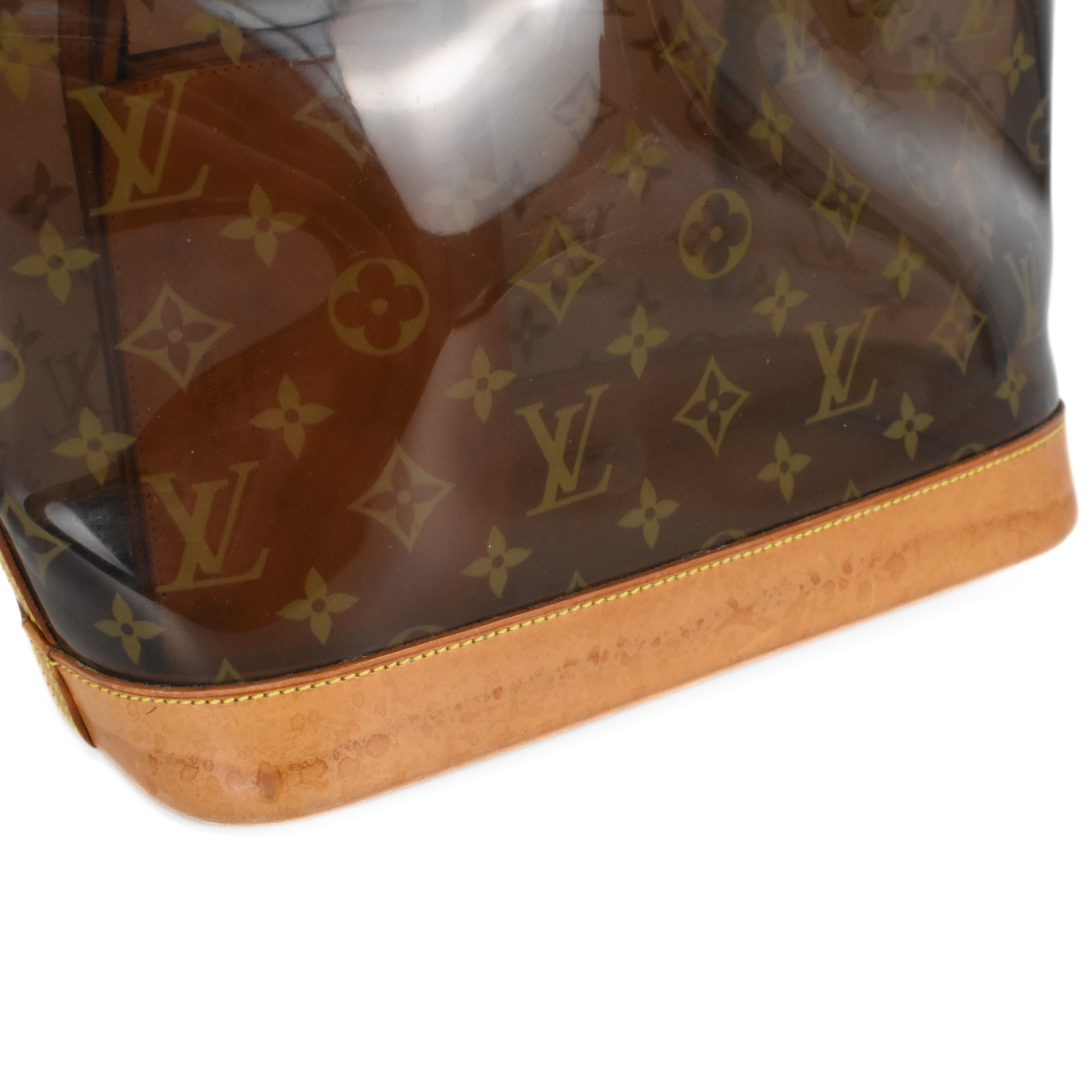 Louis Vuitton 'Ambre MM' bucket bag in monogram printed brown tinted PVC with vachetta leather accents and tortoiseshell chain link straps. Features a vachetta leather zip pouch that attaches to an interior strap.